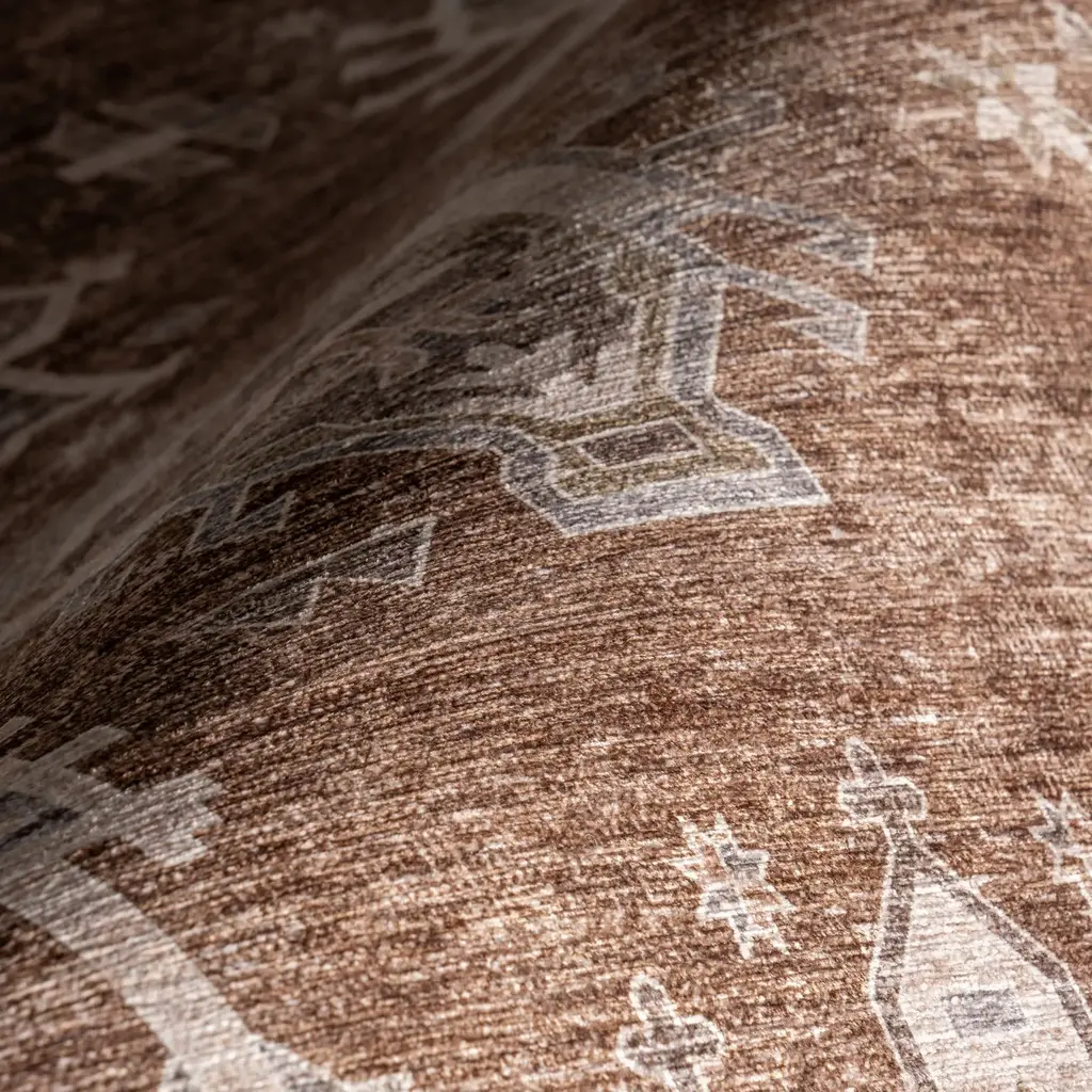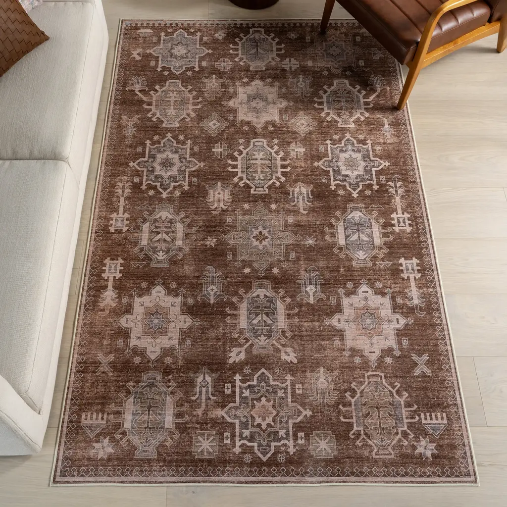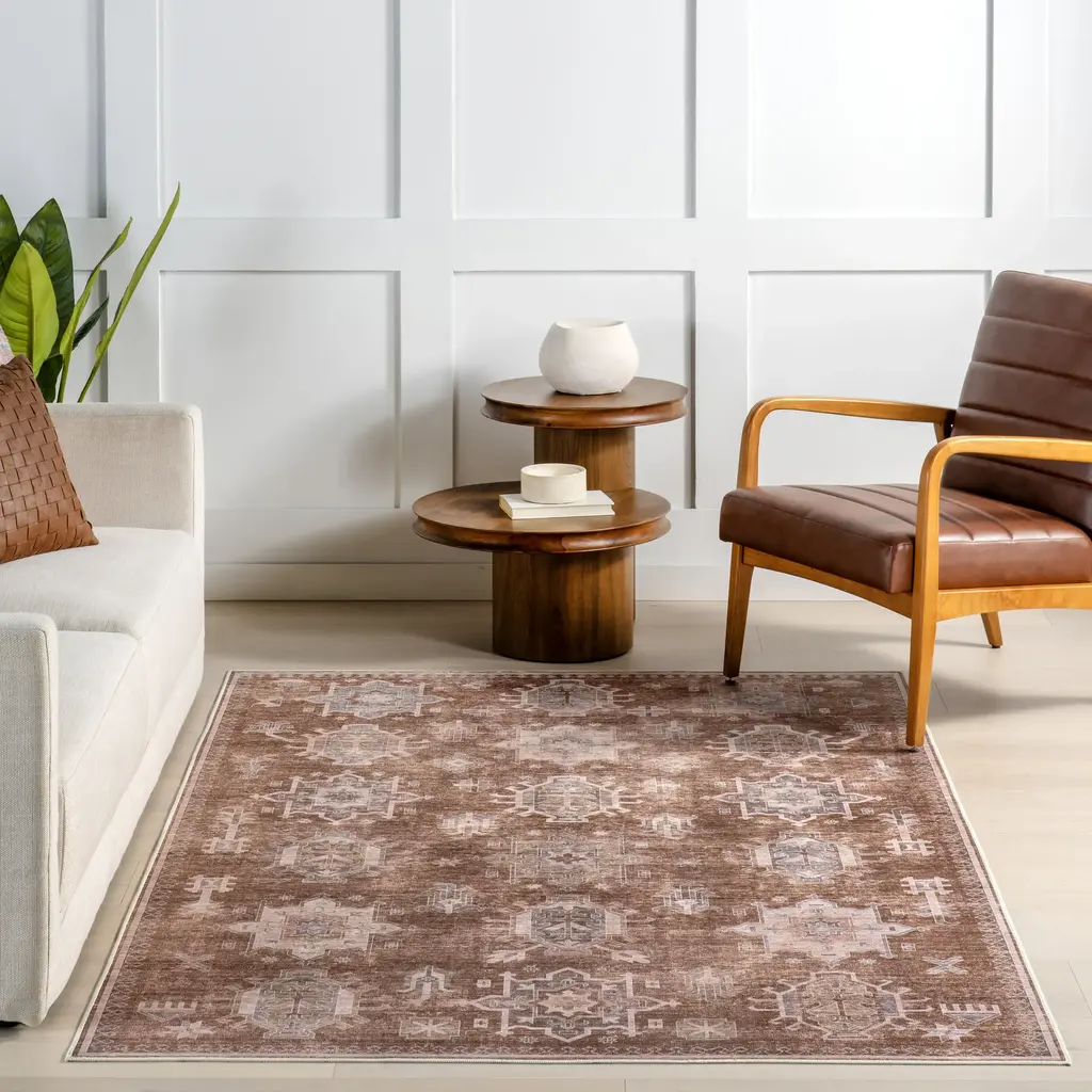 Thalia Medallion Spill Proof Washable Rug | Sienna Brown - 4' X 6'