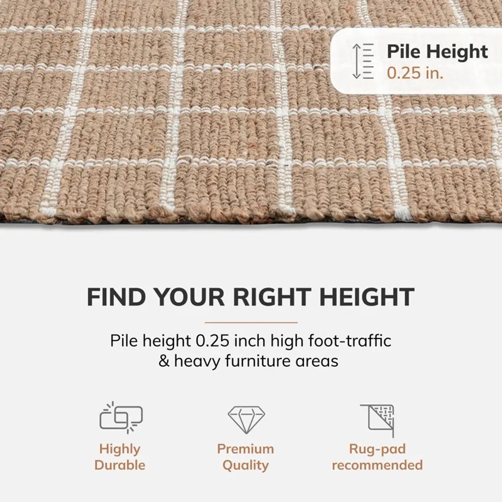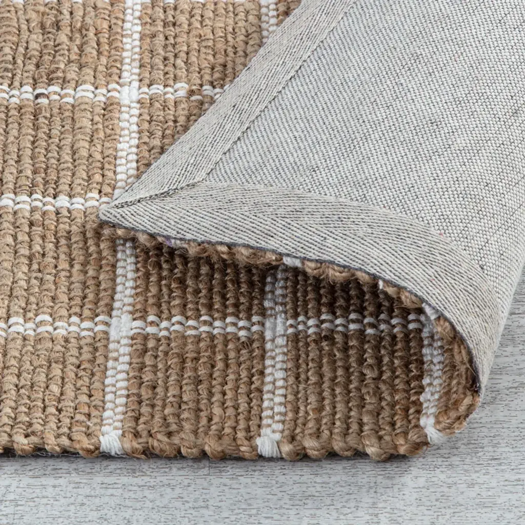 Elevate your indoor space with this hand-loomed area rug, crafted from a blend of jute and cotton for a touch of natural appeal. Its versatile design seamlessly complements a variety of styles, from coastal to farmhouse, while providing a warm and inviting atmosphere. Floor heating is safe and features a backing material for added stability, this rug is a great choice for your living room or bedroom. Keep in mind, that it's not reversible and doesn't have a non-slip backing, so we recommend pairing it with a rug pad for extra grip.