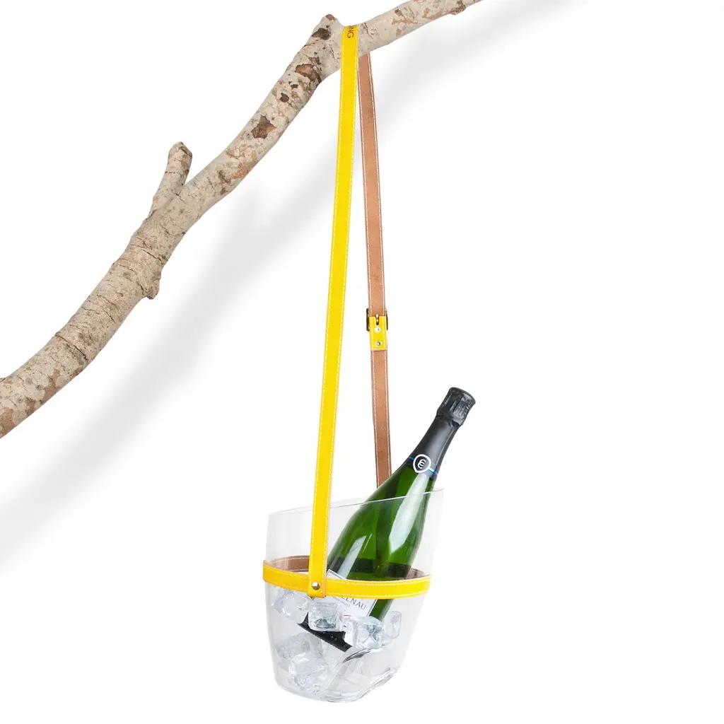 This luxurious picnic set contains one Mint Green pure new wool picnic blanket, 2 outdoor cushions, and a playful portable champagne bucket with a matching leather strap. The picnic rug and the cushions have a waterproof backing to add some extra comfort when you are enjoying the great outdoors in the country or in your garden. This outdoor toolkit comes in a smart navy blue cotton storage bag with a wonderful quote about Love & Champagne from Balzac as per the 2nd image.