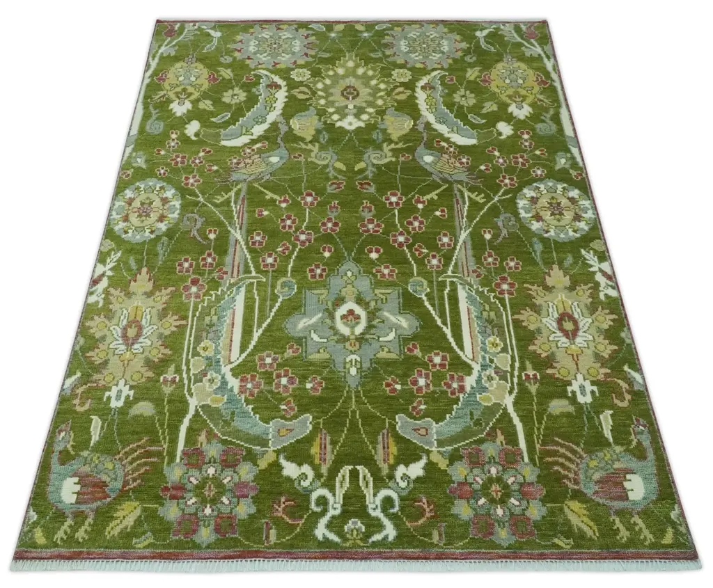 Experience the beauty of The Jungle Life with our Peacock Garden Bird Hand Knotted Custom Made Wool Area Rug. Handcrafted with precision and care, this rug features intricate details and a vibrant color palette. Made with high-quality wool, it offers durability and a touch of luxury to any room. Hand-Knotted Made with Wool Made to Order in 30-45 Days Color: Green Made with 22 knots per Square inch USERS GUIDE Avoid prolonged moisture Vacuum regularly and/or shake to remove dust Do not pull any loose threads. Use scissors to simply cut the ends The blot spills immediately with a white cloth. Harsh chemicals may damage or fade the rug Use rug protectors under heavy furniture