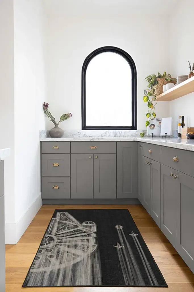 Jump onto "a galaxy far, far away...." with The Rebellion Rug. This Star Wars-themed rug features three of the Rebel Alliance's most iconic starships (the X-wing, the A-wing, and the fastest hunk-of-junk in the galaxy, the Millennium Falcon), illustrated using broad, painterly brushwork in constrasting light and dark colors to suggest motion and flight through space.