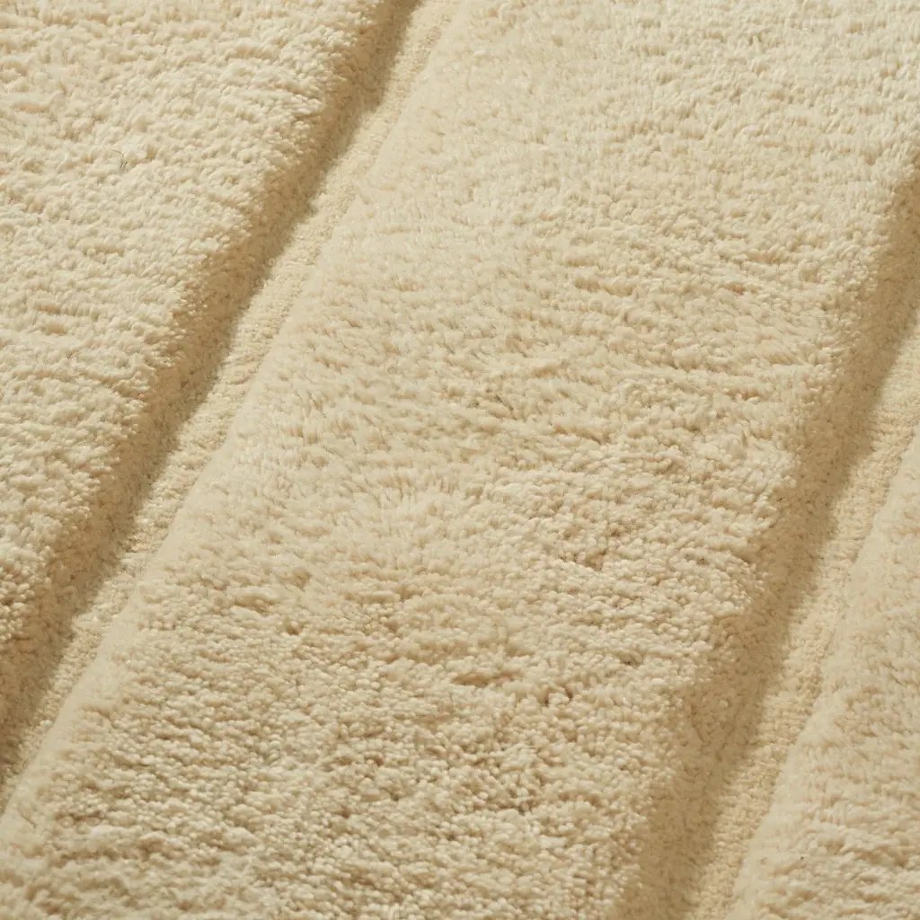 The Ribbed Rug, a macro look into the ridges of a classic ribbed wool knit. Featuring alternating rows of height that create a raised textural and visual pattern. Long vertical tube-shaped lines are used throughout to trick the eye to elongate the length of your space and the things within it.
