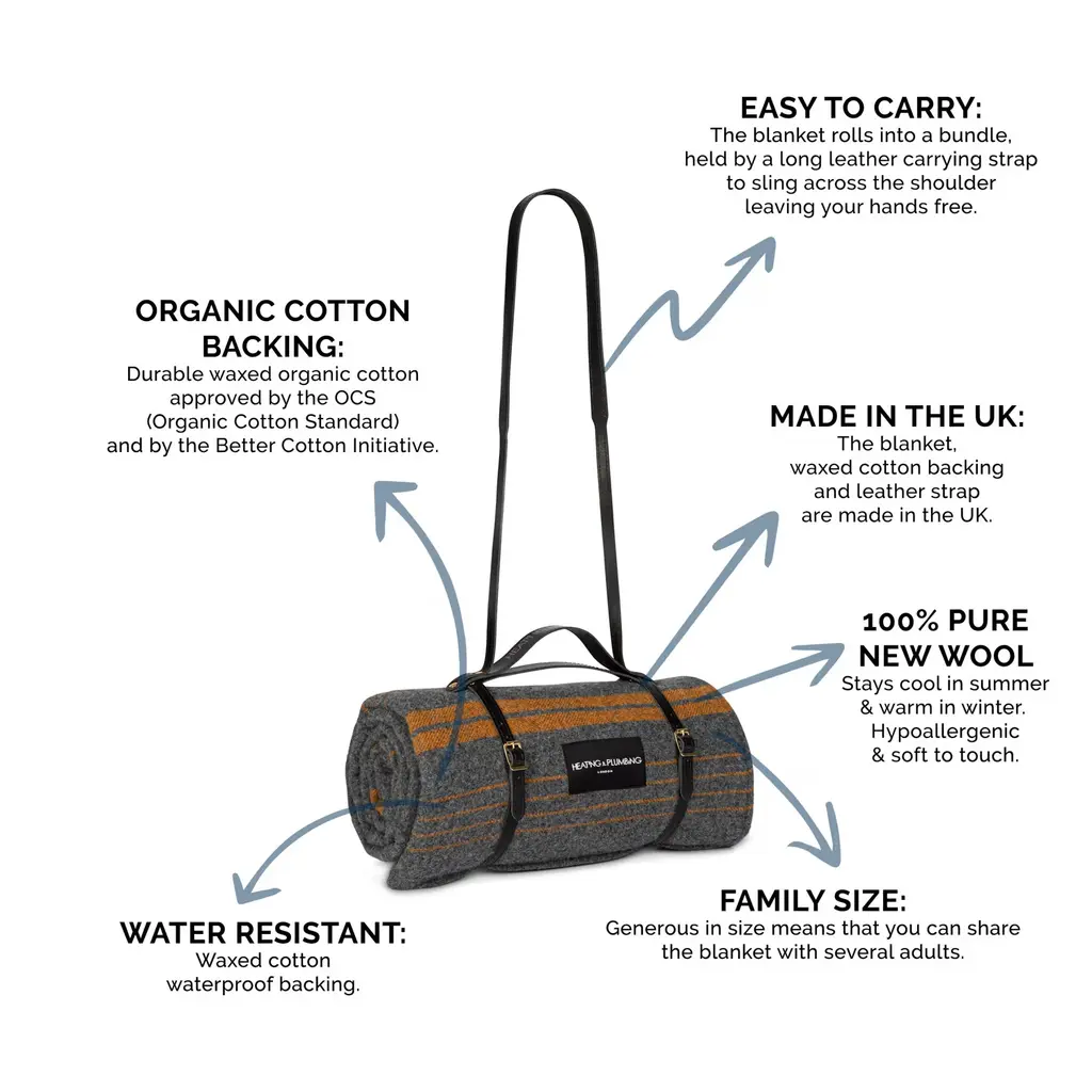The Wool & Wax Edition Picnic Blanket - Yellow & Orange - Black Strap