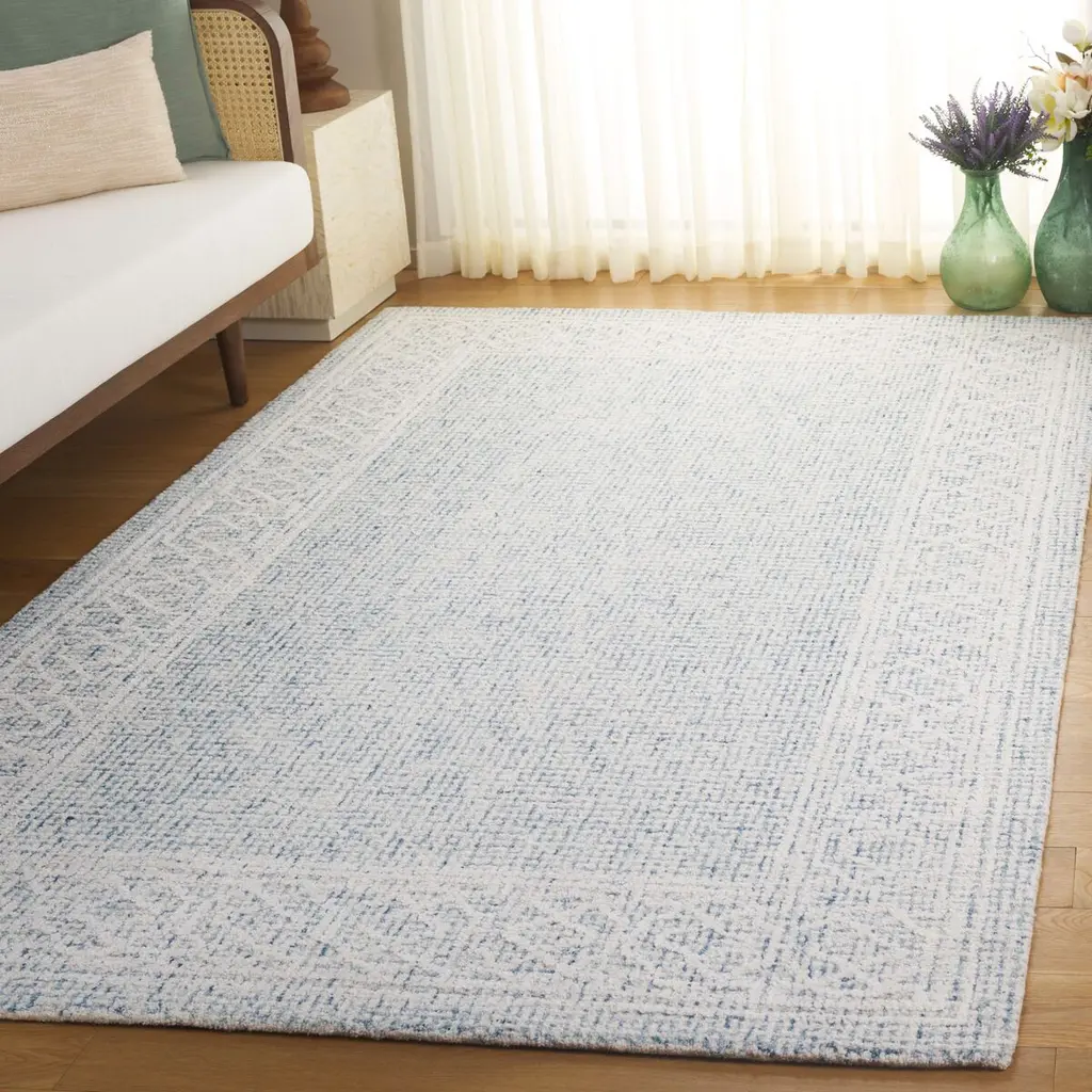 Introducing our enchanting 3' X 5' Small Rectangle area rug, an exquisitely crafted piece that seamlessly blends classic charm with modern aesthetics. This hand-tufted beauty has been meticulously constructed using premium Indian wool pile, ensuring a luxurious and enduring complement to your living space. The rug showcases a serene blue and ivory color palette, which invites a peaceful ambiance to any room. The subtle interplay of hues is met with a sumptuously soft 5/8'' pile height, creating a plush underfoot experience that you and your guests will appreciate. Delicate yet sophisticated, the pattern dances across the rug with intricate detailing that displays the artisanal craftsmanship with every stitch. Made with love and care in India, this rug embodies the perfect marriage of traditional techniques and contemporary style, making it an ideal selection for those who appreciate the finer details in home decor. Whether your home is adorned with sleek modern furnishings or eclectic pieces, our rug will adapt and enhance your living area. Let this Indian wool masterpiece be the foundation of your home's aesthetic, offering both comfort and timeless elegance.