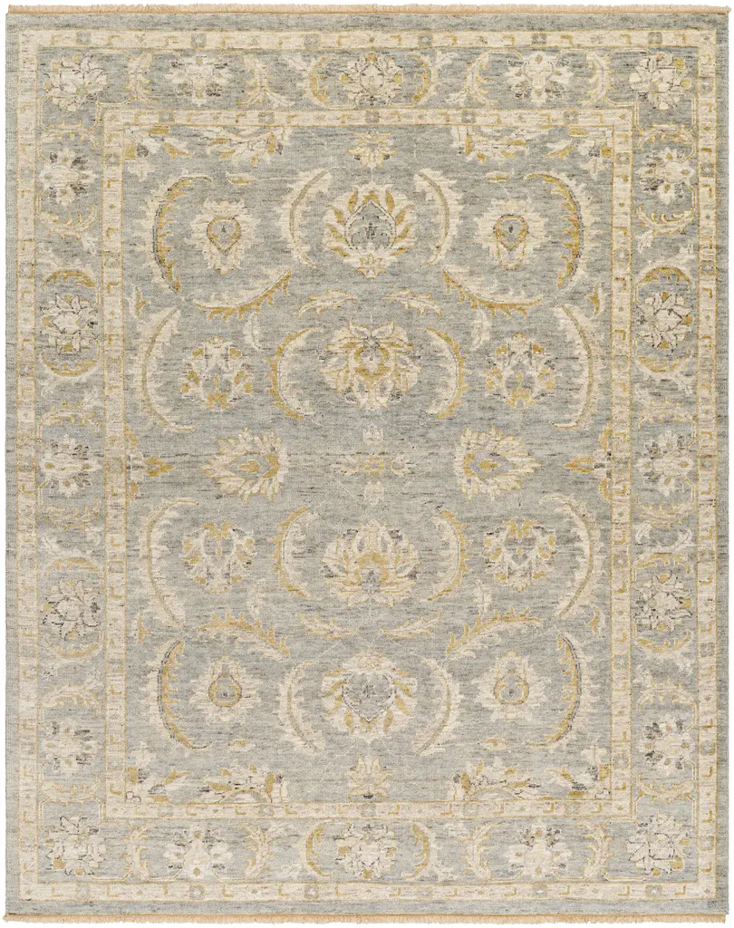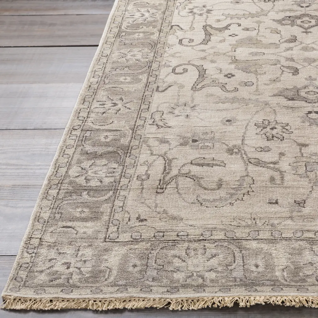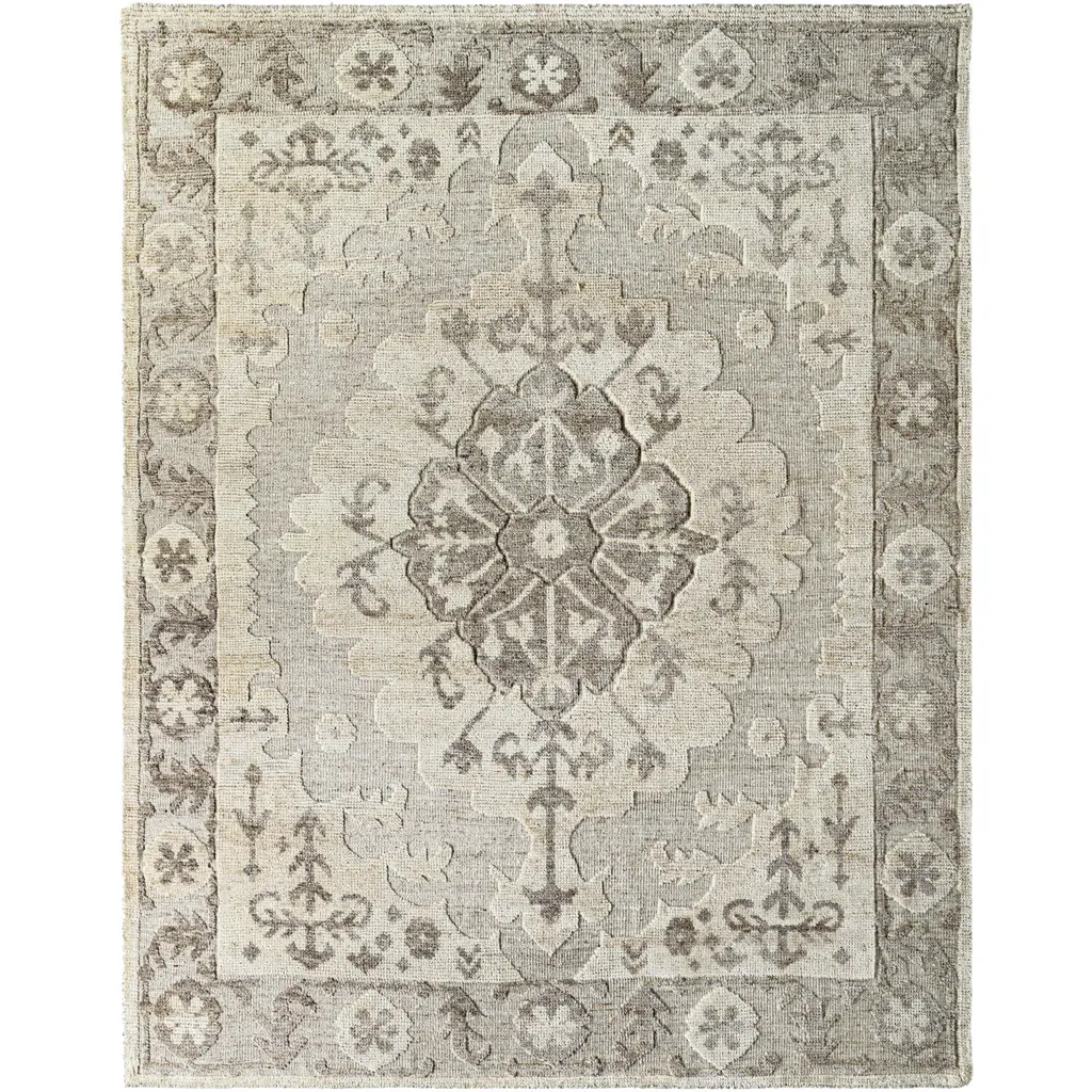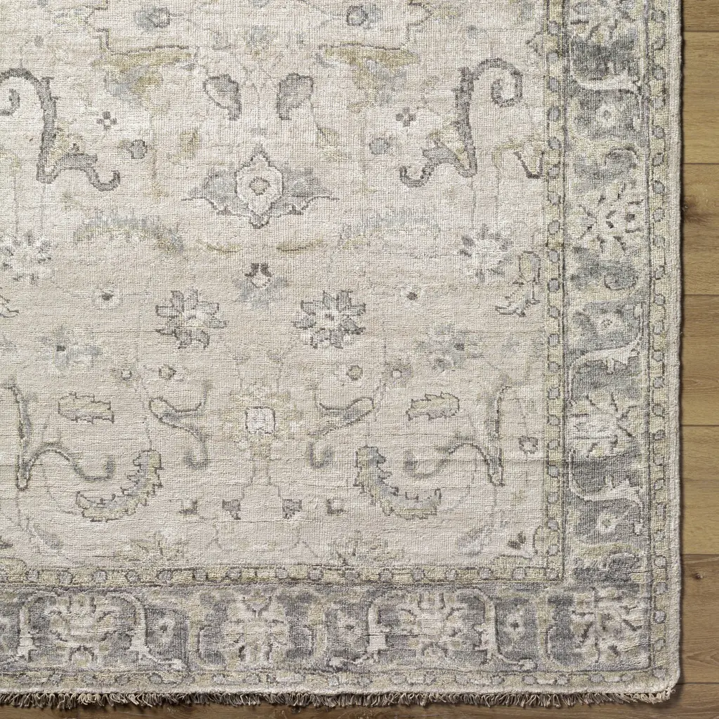 The Theodora Collection showcases traditional inspired designs that exemplify timeless styles of elegance, comfort, and sophistication. With their hand knotted construction, these rugs provide a durability that can not be found in other handmade constructions, and boasts the ability to be thoroughly cleaned as it contains no chemicals that react to water, such as glue. Made with Viscose in India, and has Low Pile. Spot Clean Only, One Year Limited Warranty.