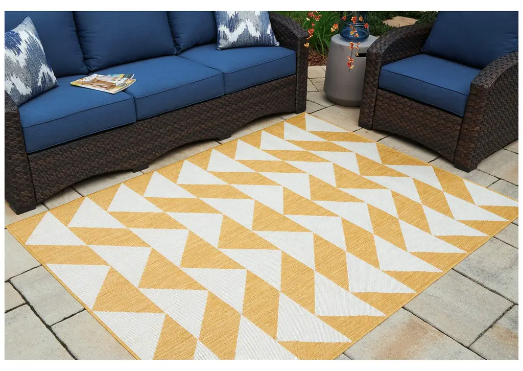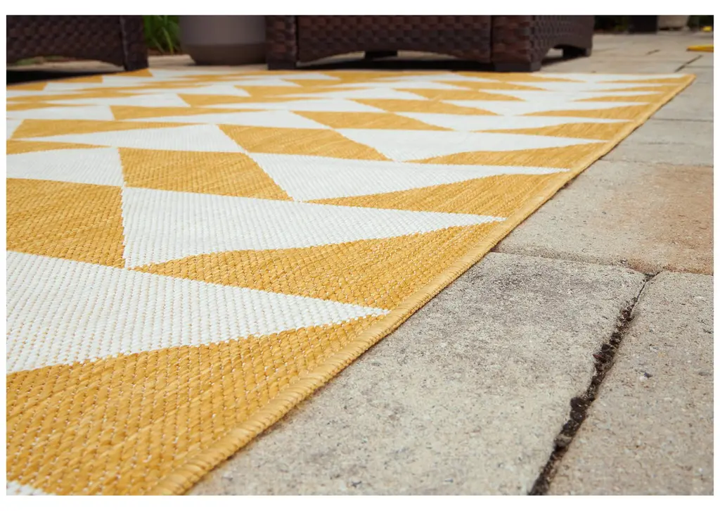 Introduce a touch of contemporary style and visual interest. The Thomley area rug's striking geometric print grabs attention while grounding your space. Perfect for indoor and outdoor use, it's a wonderful addition to any patio or stylish living room. Weight 7.000 lbs. (3.15kgs.)