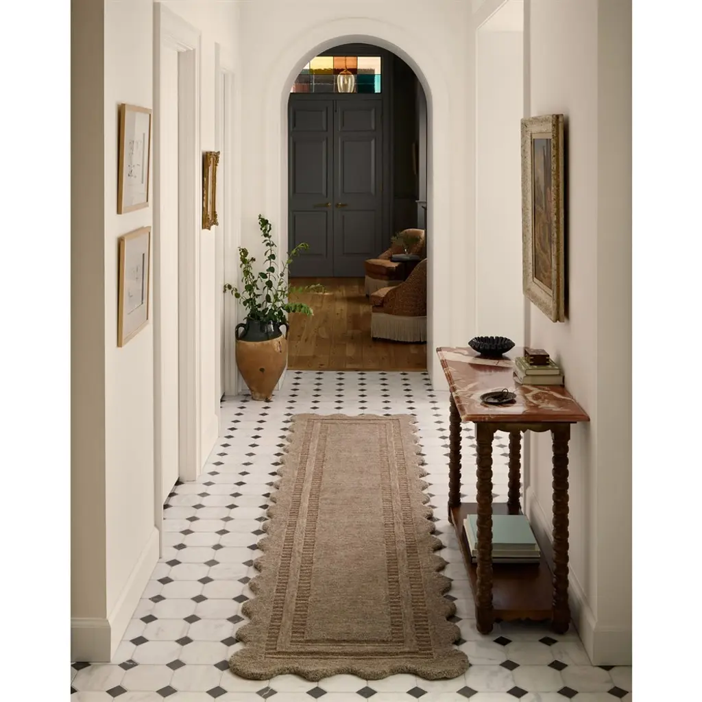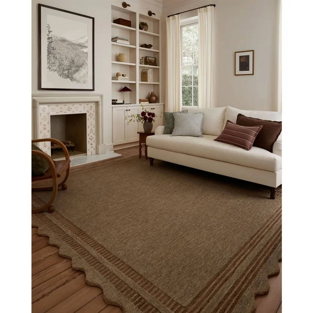 Thoren Updated Traditional Brown Wool Scalloped Patterned Rug - 9'3"x13'
