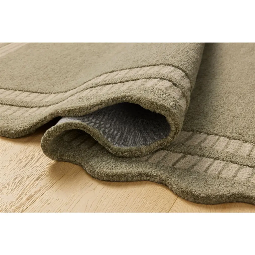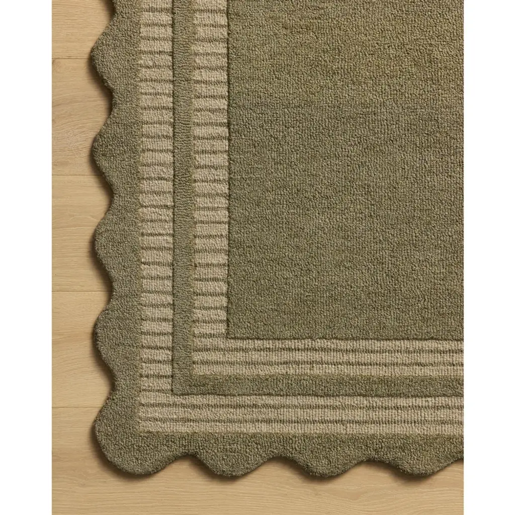 Thoren Updated Traditional Olive Wool Scalloped Patterned Rug - 7'9"x9'9"