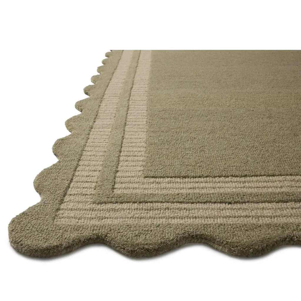 Thoren Updated Traditional Olive Wool Scalloped Patterned Rug - 8'6"x11'6"