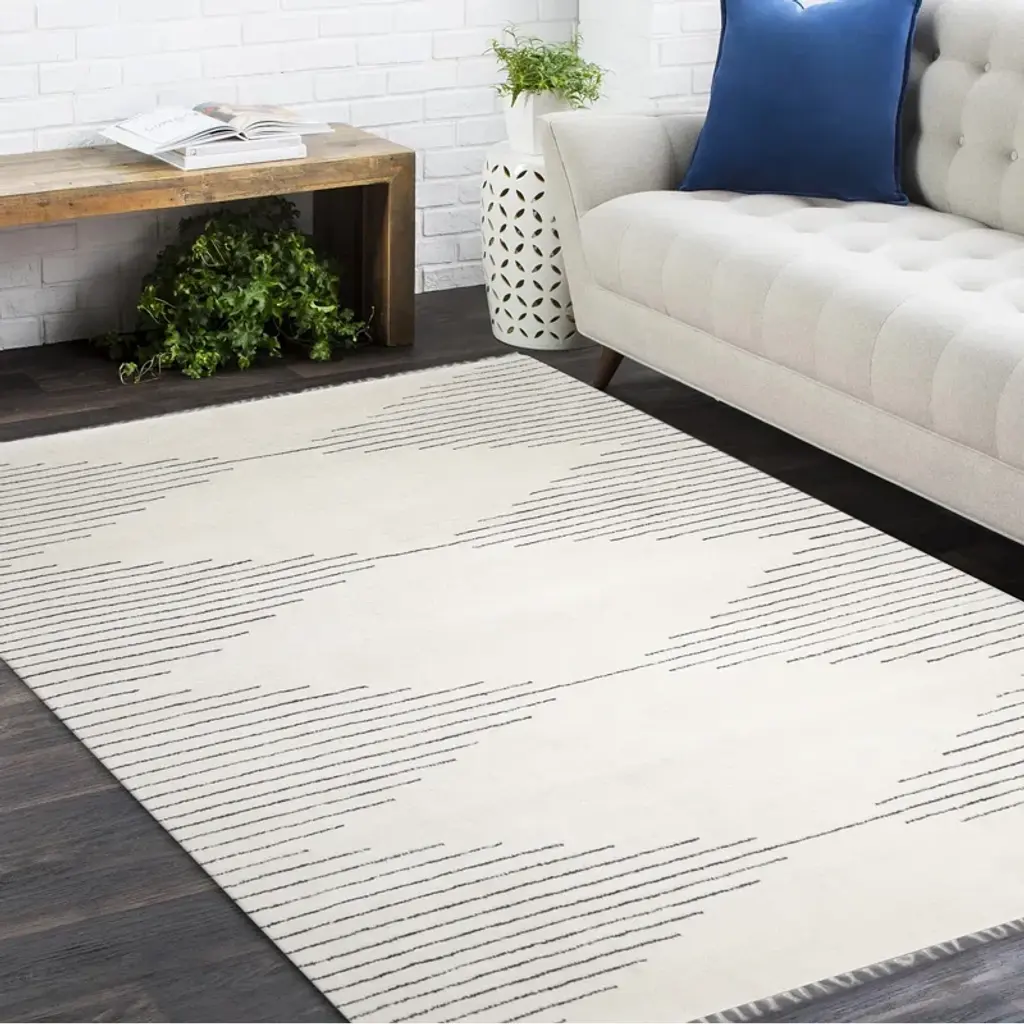 Thurman Geometric Hand-Knotted Area Rug In Parchment/gray