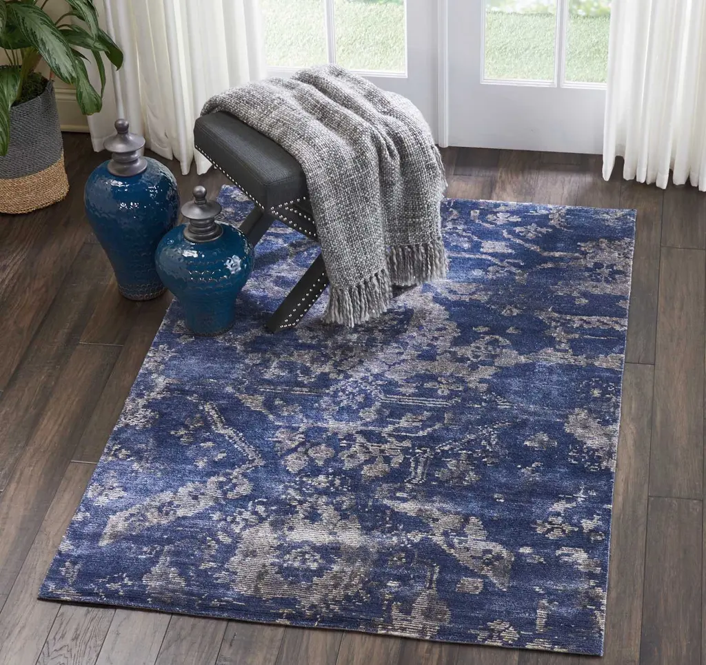 The Tibetan Essentials Style Rug in Dusk commands attention, transforming any expansive living room with its dramatic presence. Imagine this: a stunning rug measuring 9'9" x 13'9" that doesn’t merely occupy space but defines it. The distressed pattern is not just a design choice but a statement—deep indigo and rich blues mingling seamlessly with muted grey undertones. This isn't merely a motif but a gentle nod to time's artistry, creating a textured tableau that naturally captures your gaze. Beneath your feet, the luxury is unmistakable. Crafted from bamboo-extruded silk-like fiber, it offers a sumptuous tactile experience akin to the allure of natural silk, yet coupled with an unexpected resilience. Maintenance becomes less daunting, a testament to its modern intricacies. A subtle, light-responsive sheen graces the surface, adding layers of sophistication that evolve with every shift in sunlight. Selecting this fiber speaks to a commitment to sustainability, ideal for the discerning eco-conscious homeowner. The “Dusk” palette, a symphony of deep blues and ethereal distressed layers, isn’t just versatile; it’s transformative. Whether set against minimalist décor or amidst eclectic collections, it creates a soothing yet opulent base. In grand living rooms, serene master bedrooms, or formal dining settings, it elevates the aesthetic to new heights. Crafted in India, each rug reveals an artistry that speaks through every meticulously woven fiber. This isn’t simply a floor covering. It's foundational—a blend of tradition and contemporary flair that enhances comfort and style effortlessly. With its unique synthesis of design inspirations, this rug promises to shine, infusing your home with an elegance that feels both timeless and incredibly current.