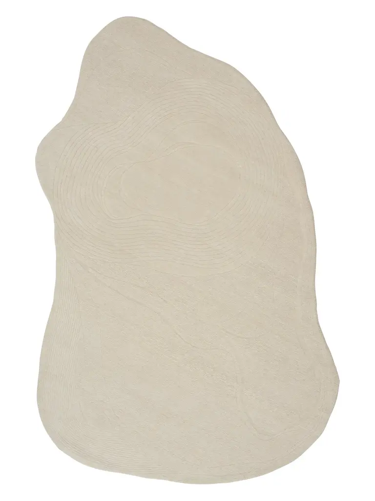 Tidal Cloud, 'Watertopia' collection by Linie DesignAbstract rug. Materials: 80% Hand carded Wool / 20% Hand carded SilkHand knotted rugModel shown on main image:'Tidal Cloud'Dimensions: 140 x 200 cmHead of Design, Urd Moll Gundermann’s intricately hand-drawn designs are transformed into creative woven narratives inspired by mystical deep-sea dwellers, using an interplay of structure, colour and form to bring her vibrant organic shapes to life.Each rug is a one-of-a-kind masterpiece, meticulously hand-knotted by skilled artisans in India, who achieve the desired tones and patterns by tying thousands of individual knots.All yarn used in Watertopia is crafted from natural materials, with Linie Design using wool, silk, linen and organic cotton. The exhibition is on display from 12th June 2024 at Linie Design’s brand store in Palægade, Copenhagen.Today, Linie Design continues its collaboration with a number of Danish textile designers, led by Head of Design Urd Moll Gundermann. Our rug collections reflect the unique creative styles of each individual designer, reproduced by hand by skilled artisans in India. Whilst keeping traditional heritage values in high esteem and exceptional quality consistently high, the design team use innovative technology and new techniques to create new dimensions and push boundaries in design.