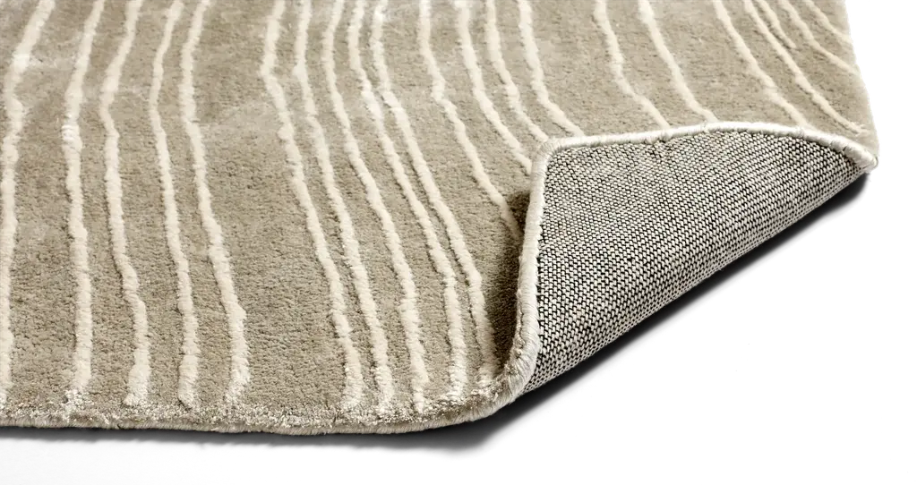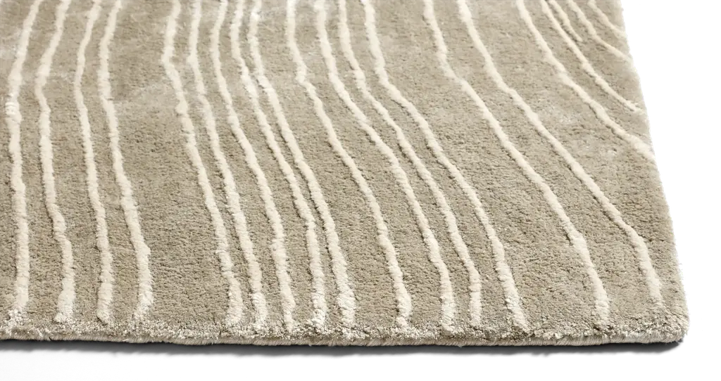 This rug is crafted in 100% TENCEL™. This sustainable yarn, made primarily from bamboo, offers a sublimely soft silky feel and vibrant colors. TENCEL™ fibers also have persistent antibacterial properties. Tide shimmers, playing with light and creating an eye-catching and luxurious look. The rug has a very unique look and will add real style to any room.
