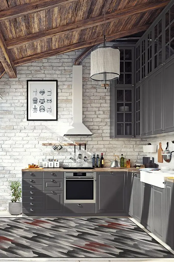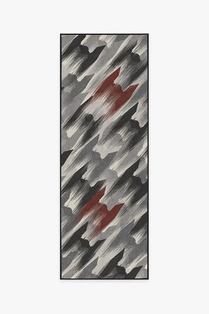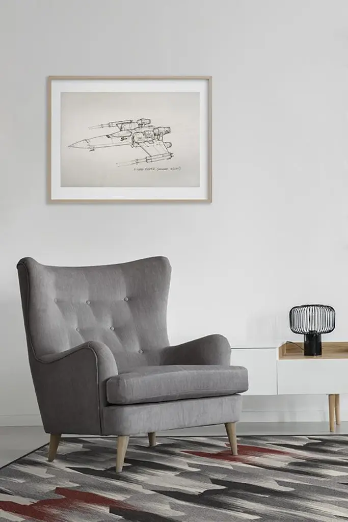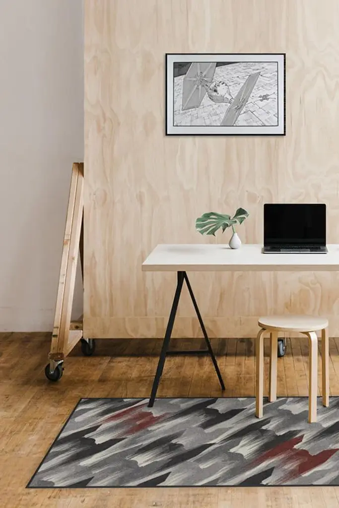 TIE Fighter Houndstooth Black Rug showcases the Empire in all of its evil glory. Tinted in gunmetal and grey, with pops of wine red on a background of pearl, this rug features a fleet of TIE fighters, the revered symbol of the Imperial fleet, zooming through space. The ships are drawn with brushstroke-like edges to show movement and are diagonally laid out to form a classic houndstooth pattern.