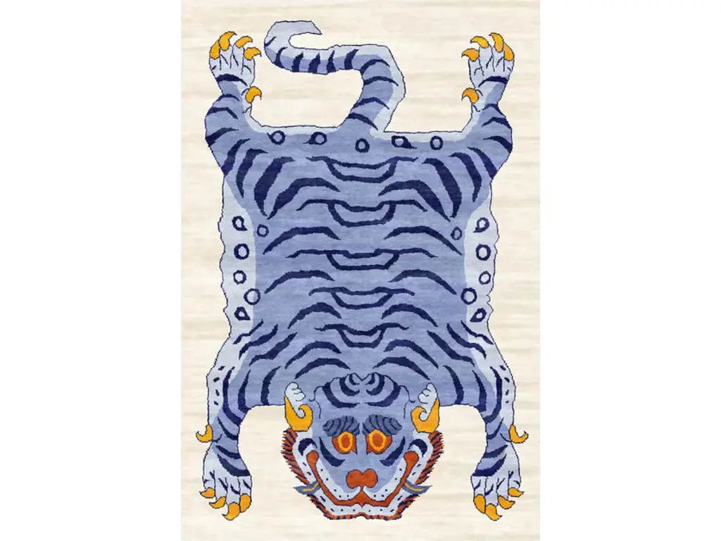 Wild cat chicness. Our Jonathan Adler Tiger Emerald Rug features an orange, cream, and black tiger sprawled across a rich emerald green background with a needlepoint texture across the design. Water-resistant, stain-resistant, and machine-washable. Rug colors may vary slightly according to your device and the lighting in your space.