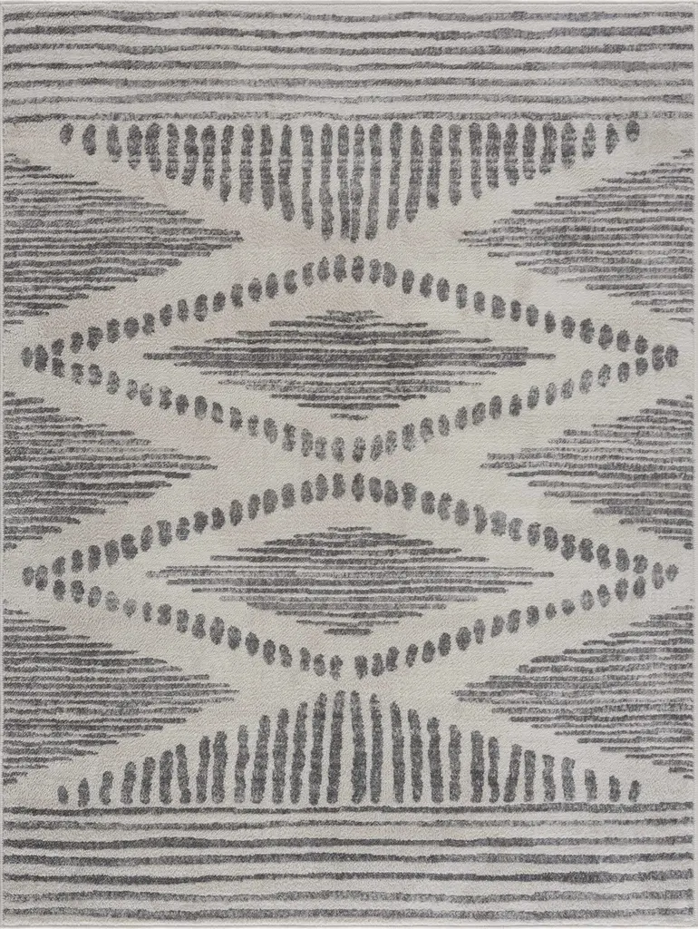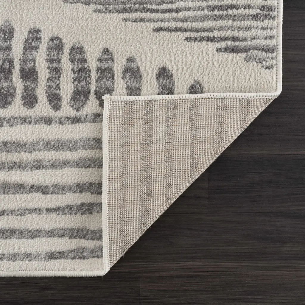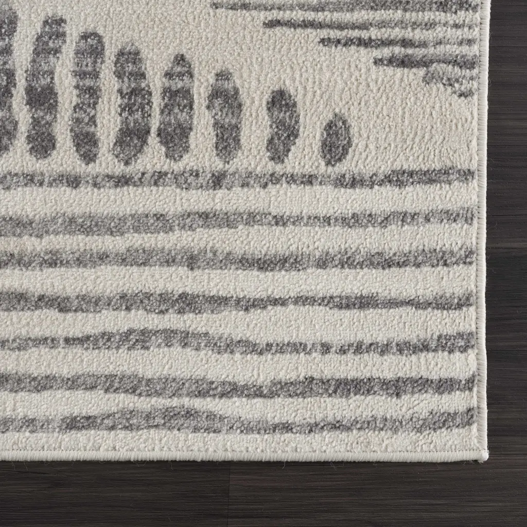 Collection: Tigris Colors: Ivory, Gray Construction: Machine Woven Material: 100% Polypropylene Pile: Medium Pile Pile Height: 0.31" Styles: Transitional,Farmhouse Backing: Polyester Made In: Turkey Thickness: 0.35" Price Range: $$$$$ (Most Affordable)