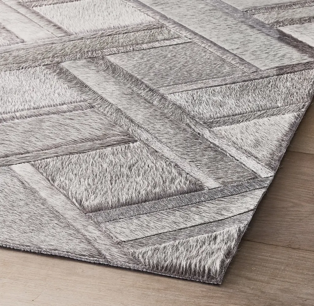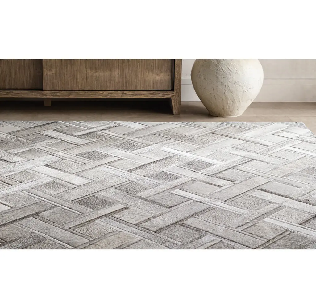 Masterfully handcrafted from the finest South American cowhide, Tika's interwoven mosaic evokes visual depth from the hides' natural, undyed colors. The patterns enhance the trompe l'oeil effect and lend a sense of rhythmic movement.