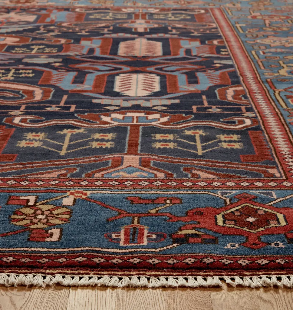Our Tilden hand-knotted rug features a traditional design in an updated, rich color palatte. Add warmth and interest to your living room or dining room with this plush rug. Each one is crafted from 100% Sardinian overtwisted wool, creating a medium-density pile that's both luxurious and durable. Details You'll Appreciate A high luster wash leaves this rug with a subtle sheen that will add nuances to yarn color depending on your angle Crafted 100% by hand using a hand-knotted technique Product Specifications 100% wool fibers Density: 40 knots per inch Pile Height: 3/8" - sheered to low profile for refined aesthetic Fringe Length: Approx. 1" (fringe length is not included in overall dimensions) Scale of motifs, pattern, and borders will adapt according to rug size Due to the hand-crafted nature of this rug, color may vary slightly from what is photographed Corner swatch represents 8" x 10" motif Use of a rug pad is recommended For indoor use only Made in India