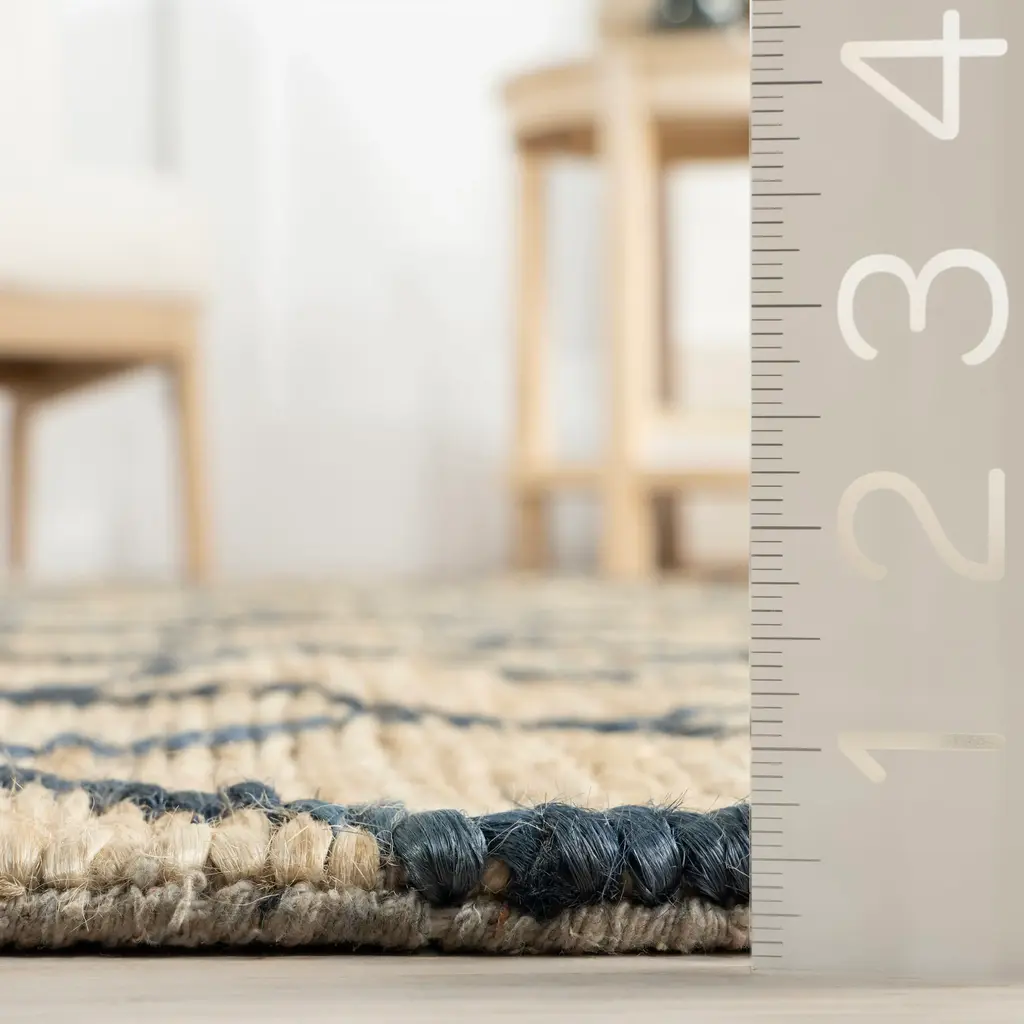 Tiles Handwoven Jute Rug | Blue - 2' 6" X 8'