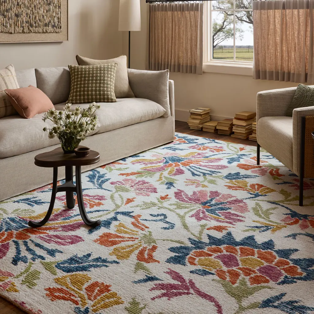 Tilly Iv White Multicolor Floral Hand Tufted Wool Area Rug
