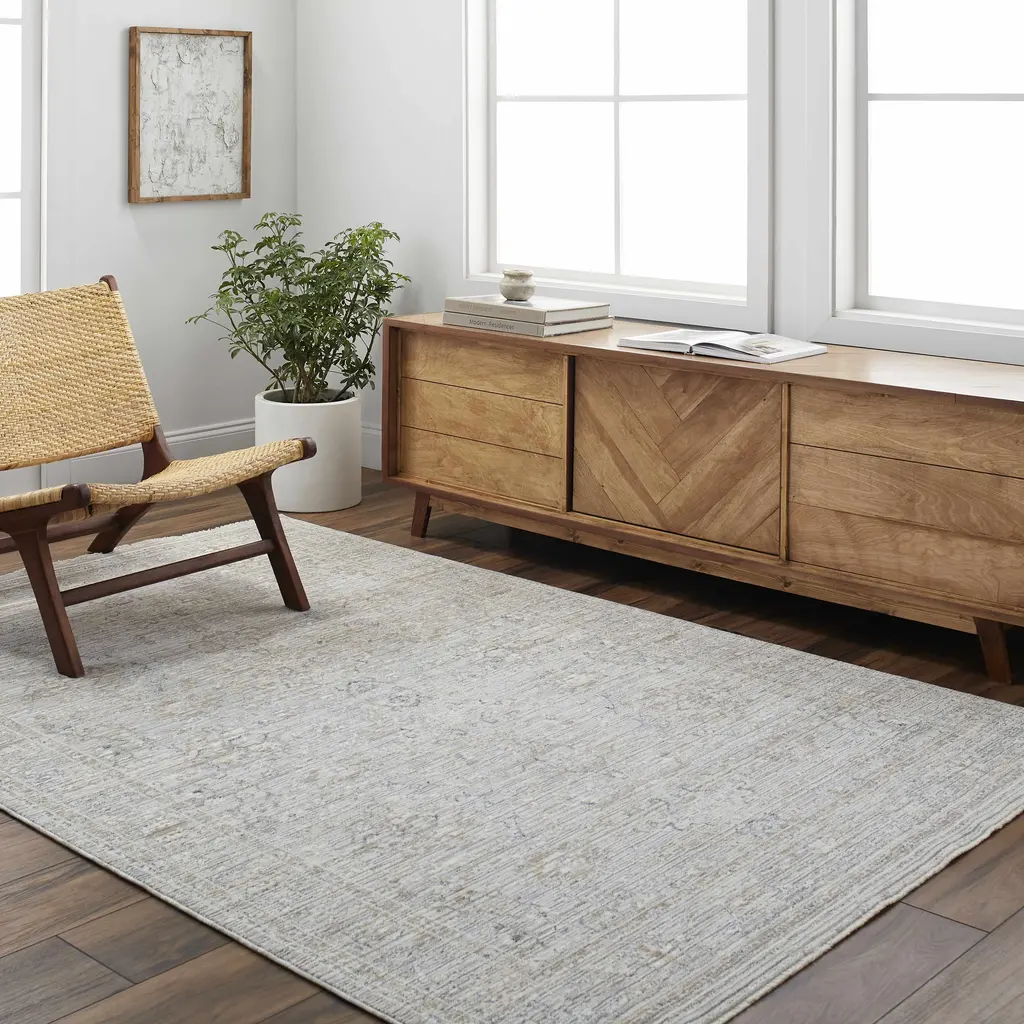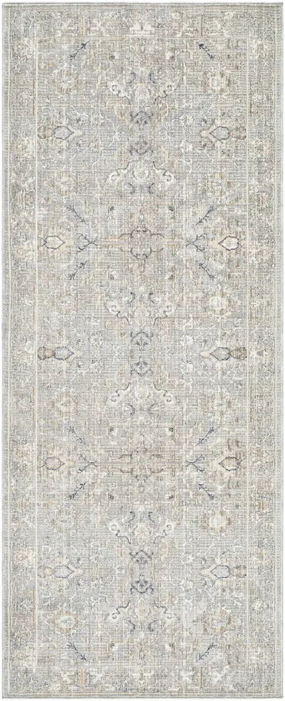 Collection: Timon Colors: Light Silver, Silver Gray, Slate Blue Construction: Machine Woven Material: 100% Polyester Pile: Medium Pile Pile Height: 0.24" Styles: Traditional Made In: Turkey Thickness: 0.28" Fringe Length: 1.18" Price Range: $$$$$ (Affordable)