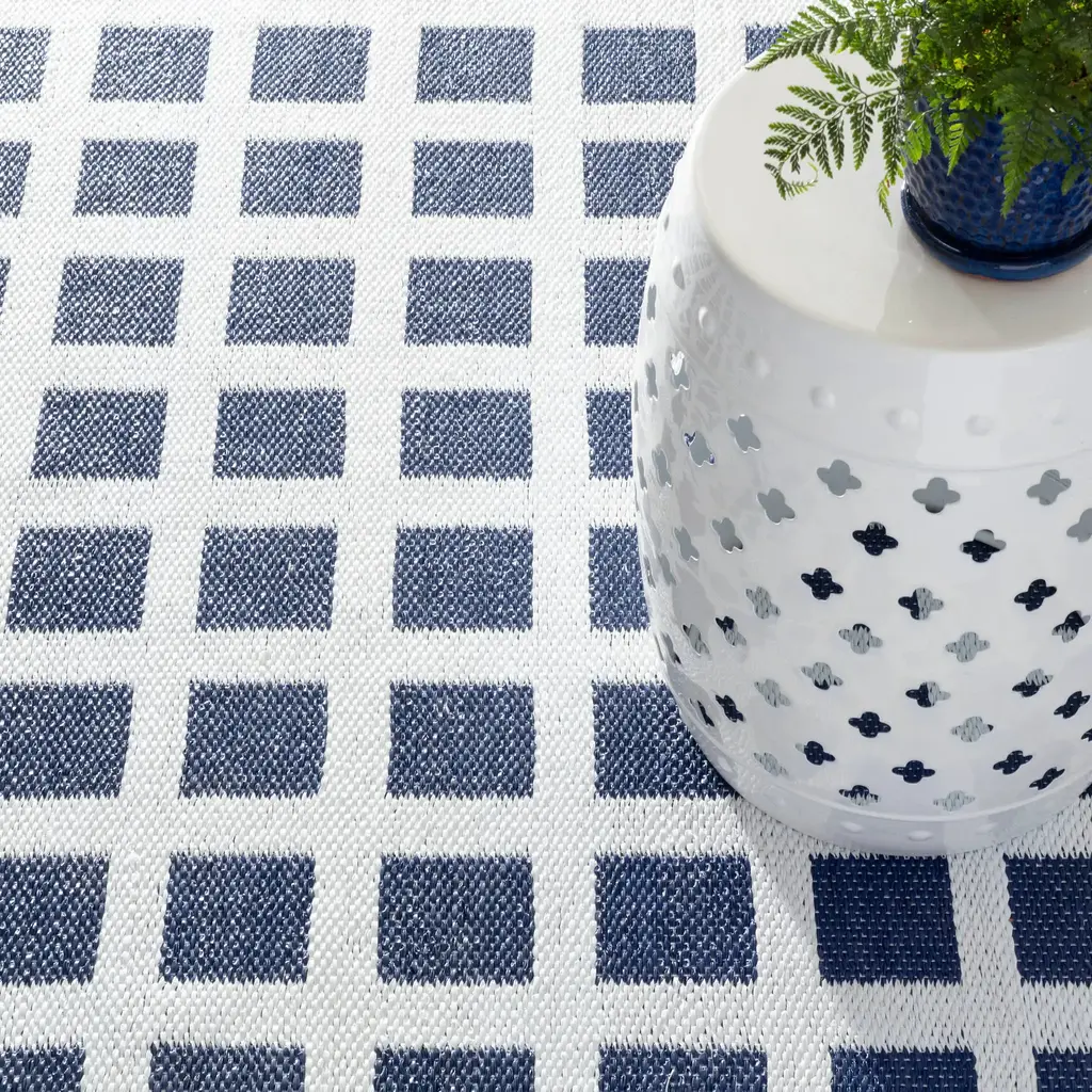 Part of the Gray Benko x Annie Selke curated collection. The Titto Handwoven Outdoor Rug with its modern, simple check brings a stylish touch to any space that needs an easy-to-clean option. Made of matte PVC fabric that is light but dense, it lies flat, stays put, and is water- and stain-resistant. Terrific for outdoor spaces like patios, porches, and decks, it's an easy to clean, quick-drying option.