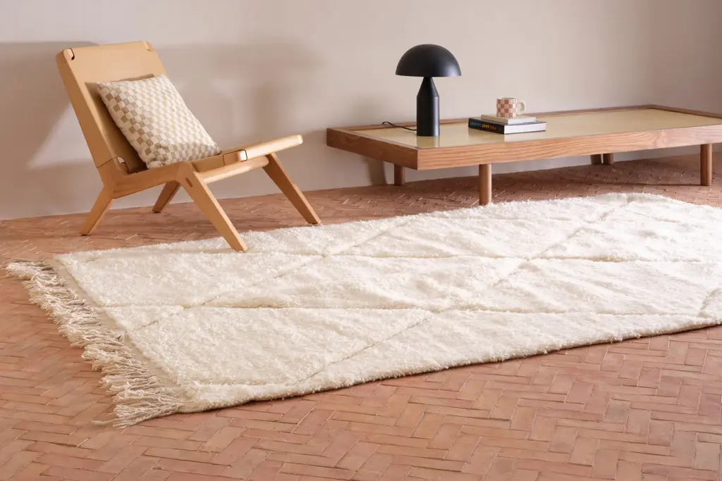 Our Moroccan pieces are each one-of-a-kind. Much of our collection was woven between 30 and 100 years ago, and curated by us. Other rugs in our collection are fresh off the loom and made with traditional techniques. Moroccan rugs don’t come with a key. As with any painting or poem, their motifs have many subjective interpretations. Originally made for personal use, these rugs took months to weave, documenting a shifting tide of events and emotions in the weaver’s life.