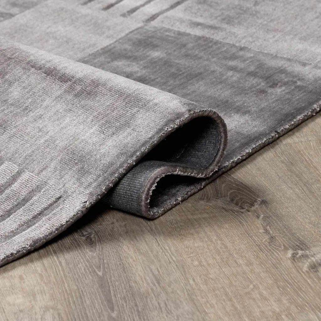 Collection: Tjode Colors: Slate Blue, Gray Construction: Hand Loomed Material: 100% Viscose Pile: Medium Pile Pile Height: 0.24" Styles: Contemporary Backing: Canvas Made In: India Thickness: 0.45" Price Range: $$$$$ (Affordable)