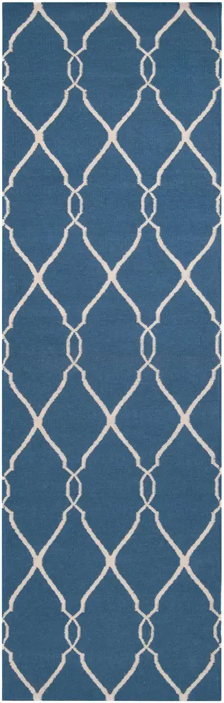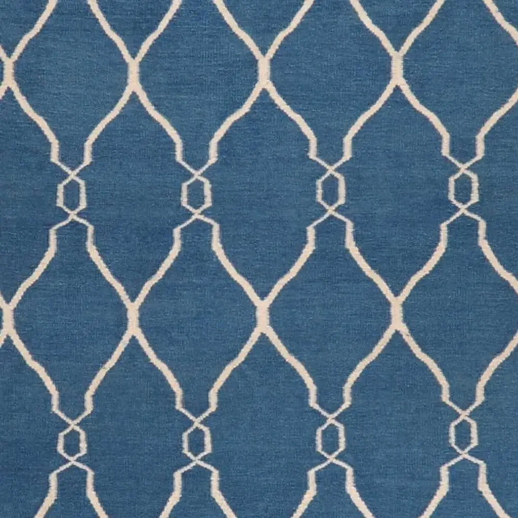 Collection: Toccopola Colors: Navy, Peach Construction: Hand Woven Material: Face: 100% Wool Pile: No Pile Styles: Transitional Made In: India Thickness: 0.16" Price Range: $$$$$ (Affordable)