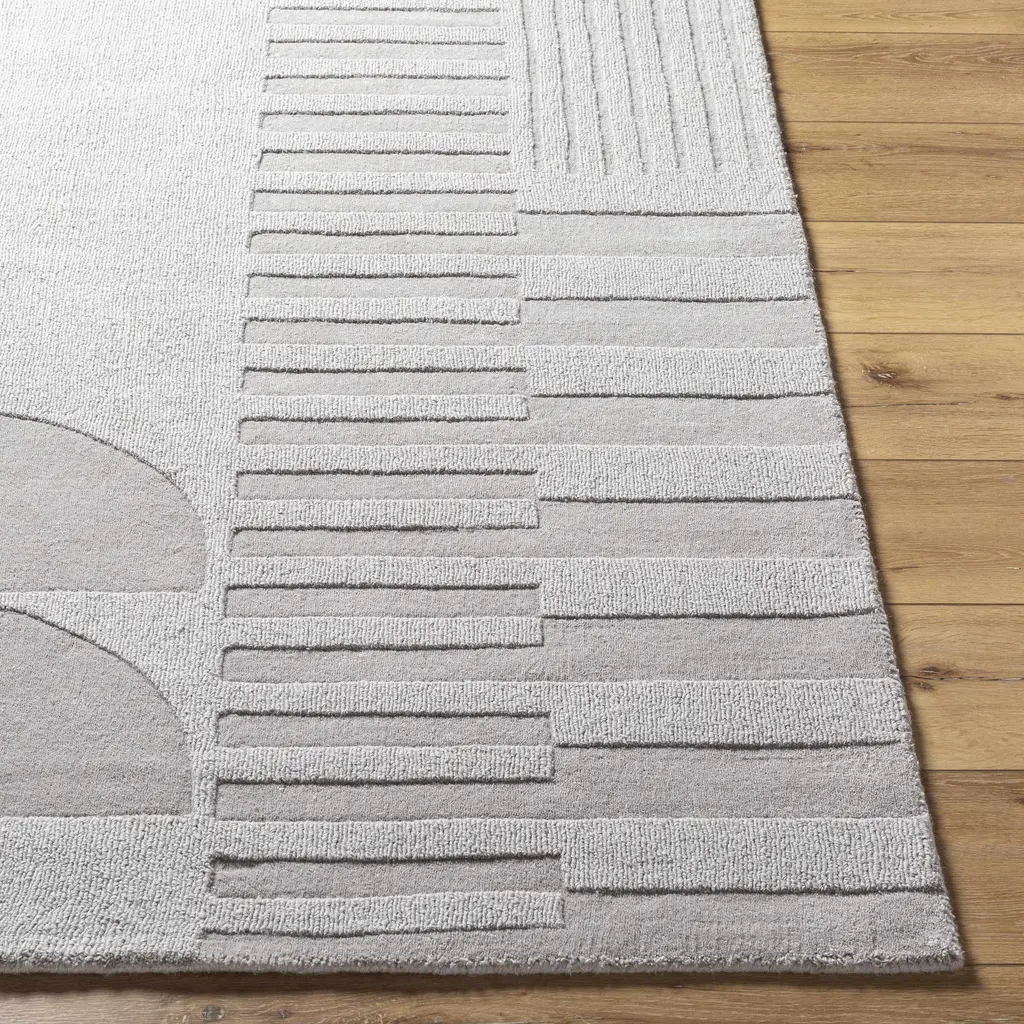 Collection: Tohfa Colors: Silver Gray, Sage Construction: Hand Loomed Material: 100% Wool Pile: Medium Pile Pile Height: 0.4" Styles: Contemporary Backing: Canvas Made In: India Thickness: 0.55" Price Range: $$$$$ (Affordable)