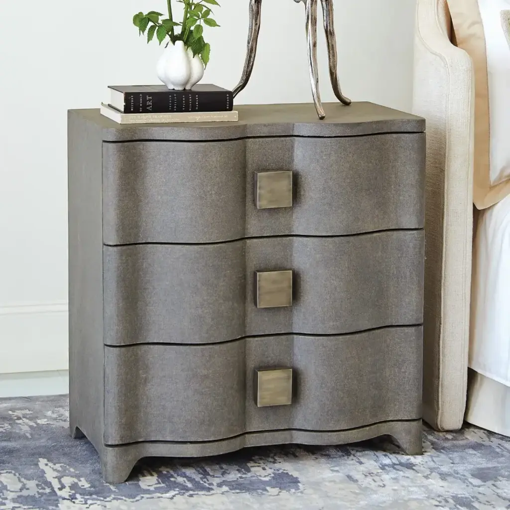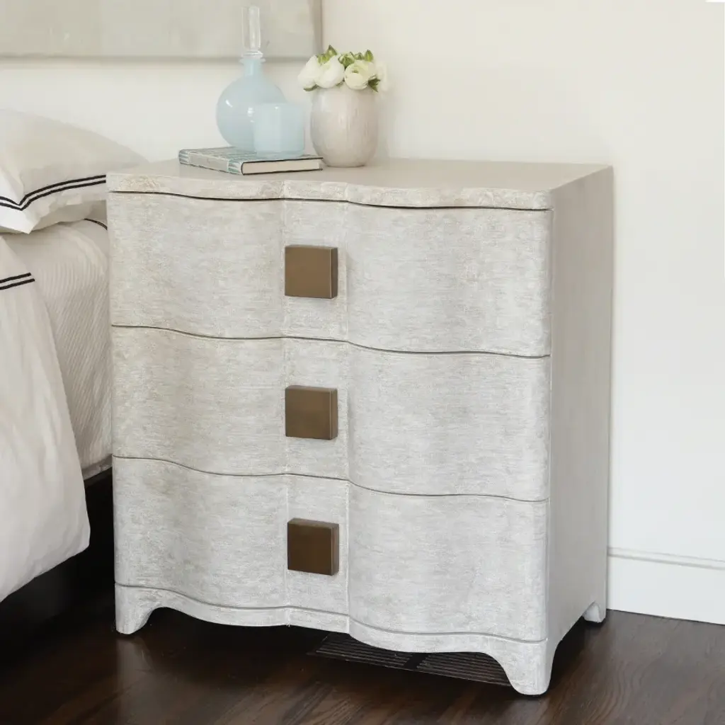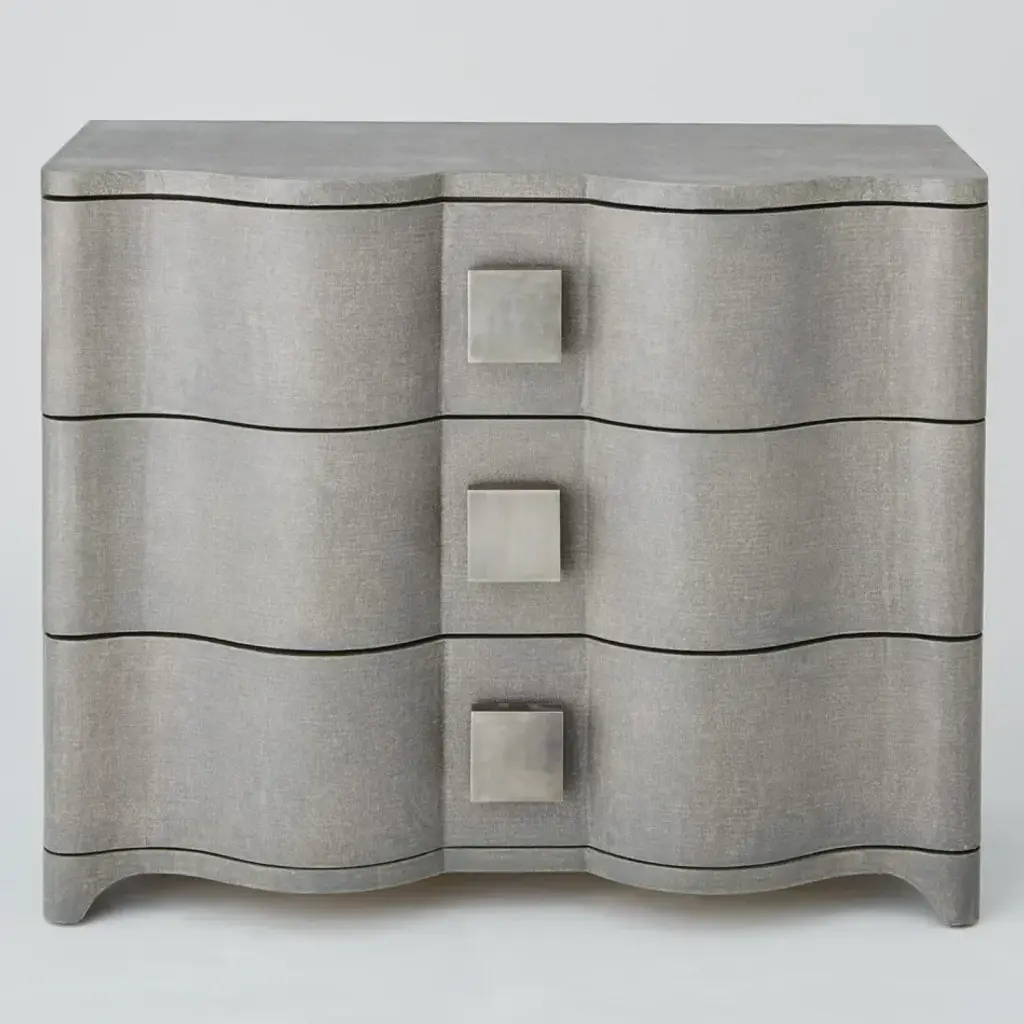 Carefully hand-wrapped in fine Belgian linen and topped with layer upon layer of a delicate paint glaze, this collection is built of solid white oak and finished with customized antique brass hardware. A technique that fell out of favor for many years, fabric wrapping furniture is an exacting art that begets pieces crafted in exceptional detail, rendering them an exercise in tactile exploration. The result is a distinctively textured furniture piece that renders a softer feel to interiors while maintaining a touch of historical influence. From a fashion forward perspective, Global Views offers accessories, furniture, statement lighting, and an assortment of rugs and mirrors to add beauty and joy to your home.