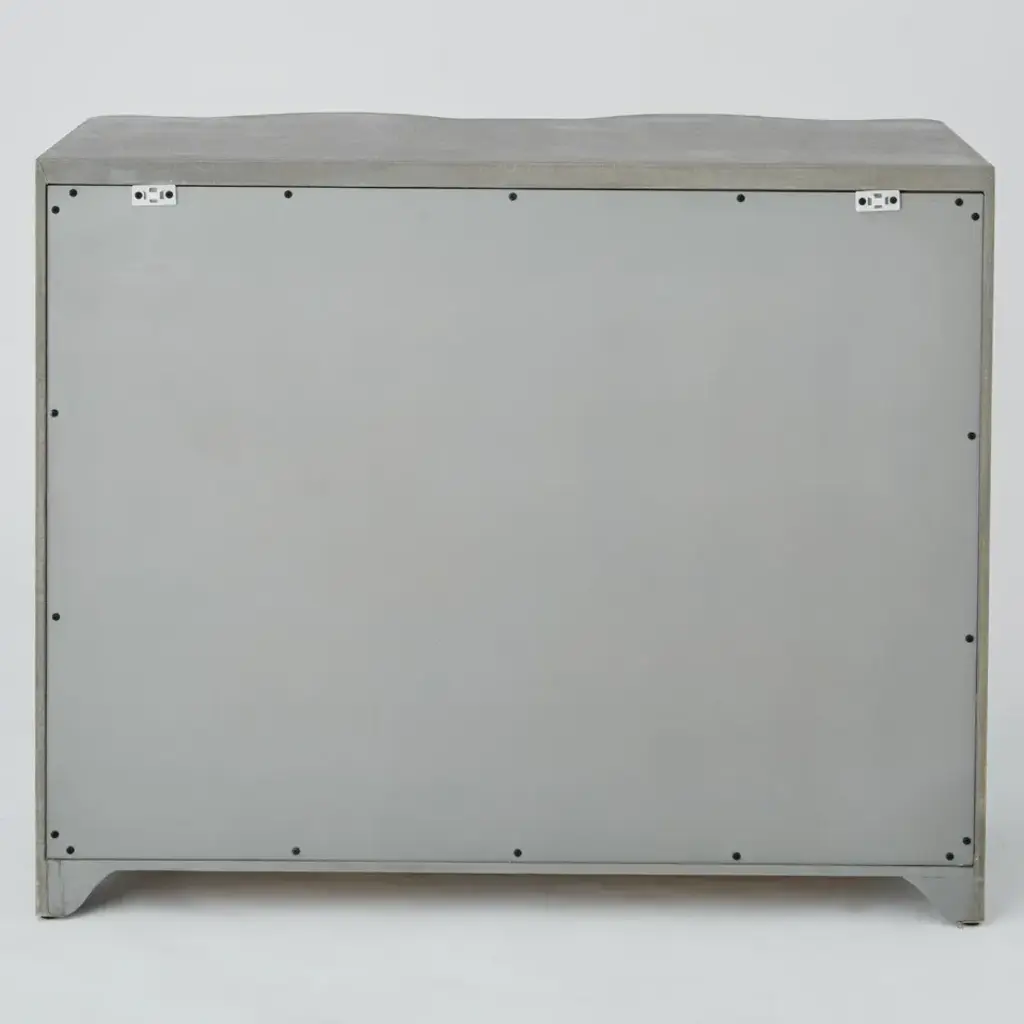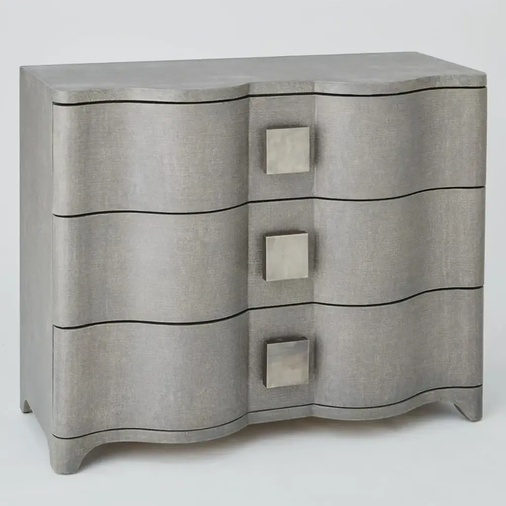 Wrapped by hand in fine Belgian linen then given a multi-layered grey-toned glaze, this collection features oak-lined drawers and custom hardware with antique nickel finish. A technique that fell out of favor for many years, fabric-wrapping furniture is an exacting art we have revived with the help of one of the industry's leading manufacturers of fine accent furniture. From a fashion forward perspective, Global Views offers accessories, furniture, statement lighting, and an assortment of rugs and mirrors to add beauty and joy to your home.