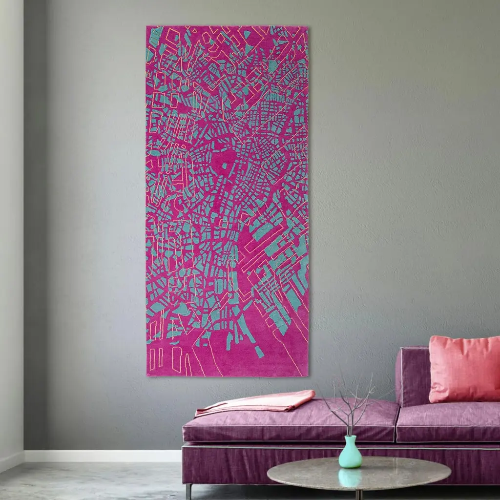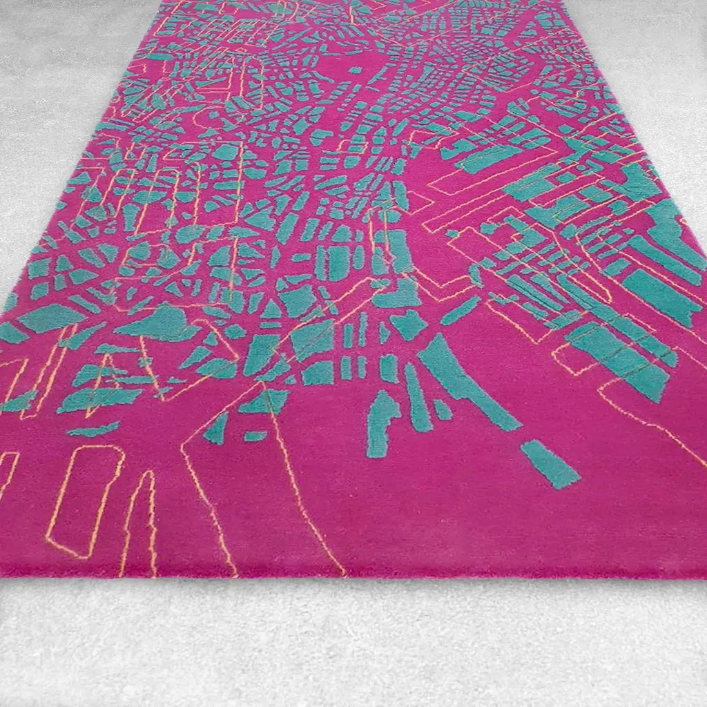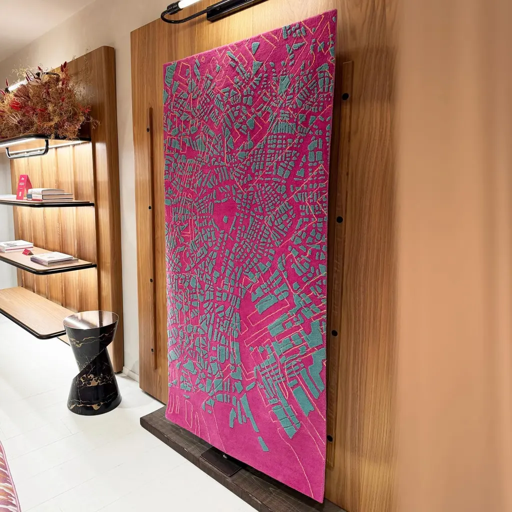 Frank&Frank designs for Matteo Pala the Maps of Cities collection, hand-knotted rugs made from New Zeland wool in northeast India.The embossed details were made by manual scissor cutting.Carpets with unique and exclusive design, personal and customized solutions.Italian design and style for "City Map" rugs made by hand.1Matteo Pala's story is a family affair, a passion and experience that oscillates between tradition and experimentation, a fascination for faraway lands and a continuous search for personal and customizable solutions, a center that specializes in rug design, creation and care.From the collaboration with Matteo Pala comes the project of city carpets, where Frank&Frank narrates the excitement of worldview through a passion for designing city maps, which are transformed into rugs, design objects, leather maps to hang on the wall, for any kind of environment: home, office, hotel, etc.Marcella Molinini and Roberto De Gregorio believe in the fascination of cartography and cultivate this mission from their many years of experience and expertise in fashion and visual design.They reinterpret urban maps as creatures, geometries, colors, labyrinths, cultures and urban spaces as bearers of emotions, opening up new perspectives on the places in which we live.