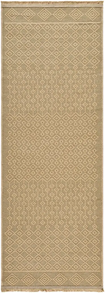 Collection: Tolla Colors: Tan, Beige Construction: Machine Woven Material: 100% Jute Pile: Low Pile Pile Height: 0.02" Styles: Transitional,Traditional Machine Washable: Yes Made In: Turkey Thickness: 0.2" Fringe Length: 1.18" Price Range: $$$$$ (Most Affordable)