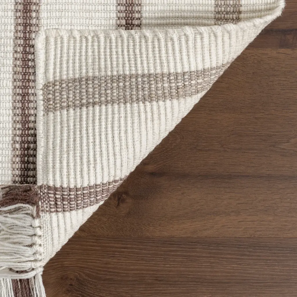 With contrasting stripes and partial fringe, the Toluca Striped Wool Rug is the embodiment of less is more. Its handwoven, flatweave design is great for high-traffic areas and the 100% wool construction ensures a soft feel underfoot. This wool rug will easily be the statement piece in your home.