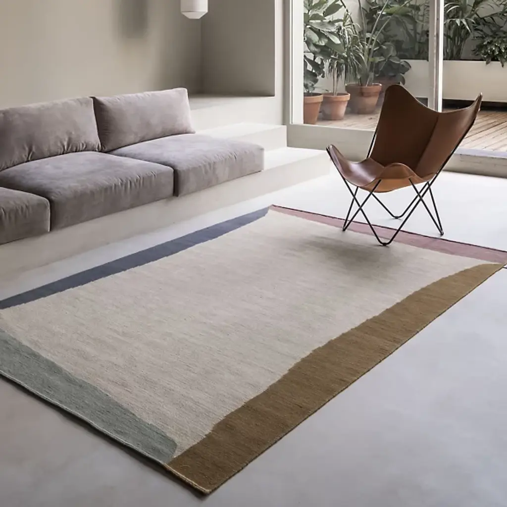 Designing for Nanimarquina, renowned painter and colorist Clàudia Valsells puts the focus on the harmonious color compositions in a surprising new medium. Each rug is hand-loomed from pure, hand-spun Afghan wool. The artist beckons the admirer to move past pure observation of the piece itself. It was meant to be a living work of art for everyday experiences. The abstract formation of understated colors brings a refreshing aesthetic to an already stylish interior design choice.