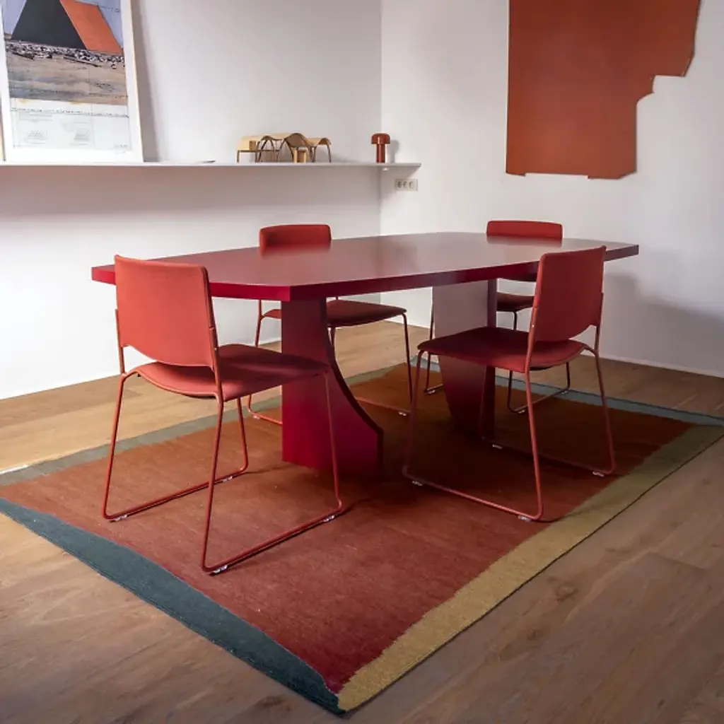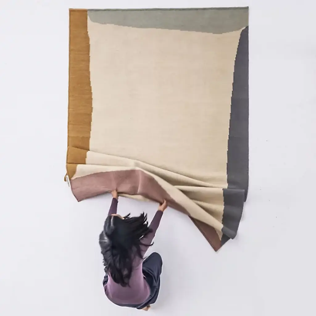 Designing for Nanimarquina, renowned painter and colorist Clàudia Valsells puts the focus on the harmonious color compositions in a surprising new medium. Each rug is hand-loomed from pure, hand-spun Afghan wool. The artist beckons the admirer to move past pure observation of the piece itself. It was meant to be a living work of art for everyday experiences. The abstract formation of understated colors brings a refreshing aesthetic to an already stylish interior design choice.