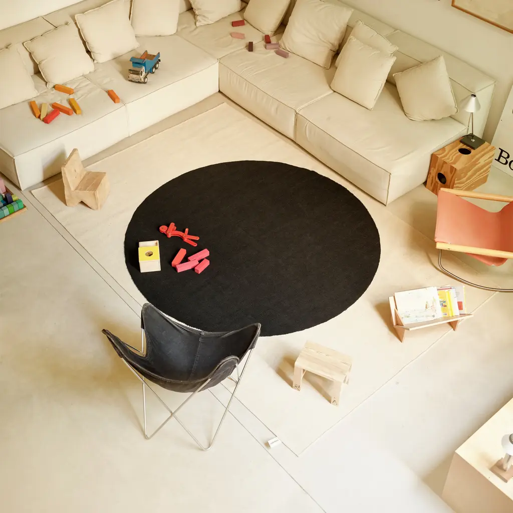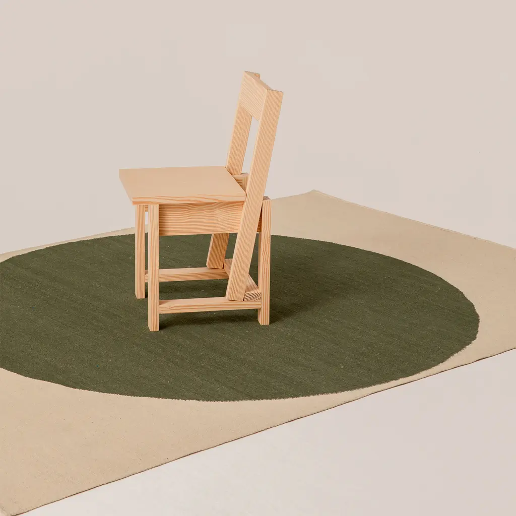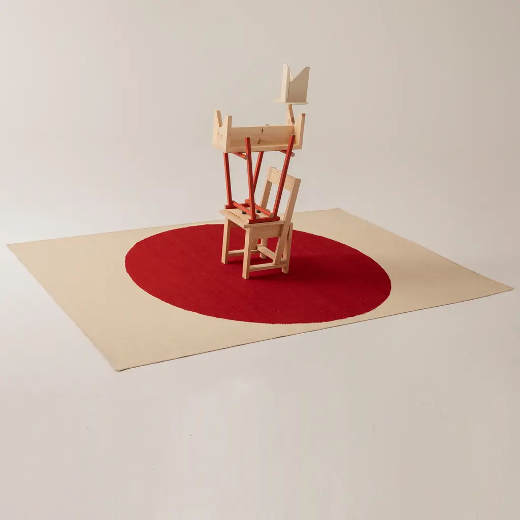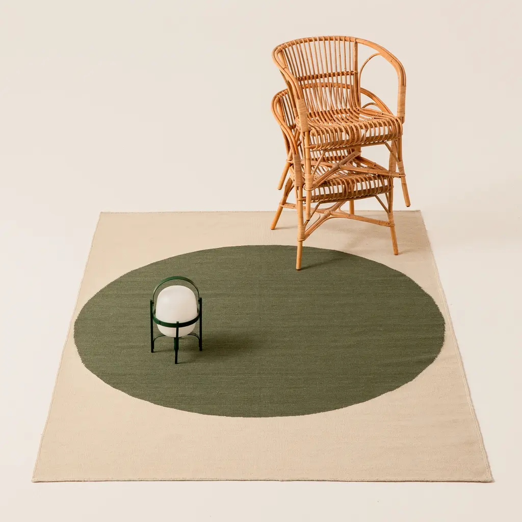 The Topo Rug from Nanimarquina redefines functional design by embracing simplicity and striking visual contrast. Featuring a large circle delicately placed at the edge of a rectangular field, this handwoven kilim blends traditional Afghan handspun wool craftsmanship with a modern, minimalist aesthetic. Available in monochromatic black, green, or red hues set against a natural raw background, the Topo Rug adds a refined, artistic statement to any space while honoring timeless textile heritage. Highlights