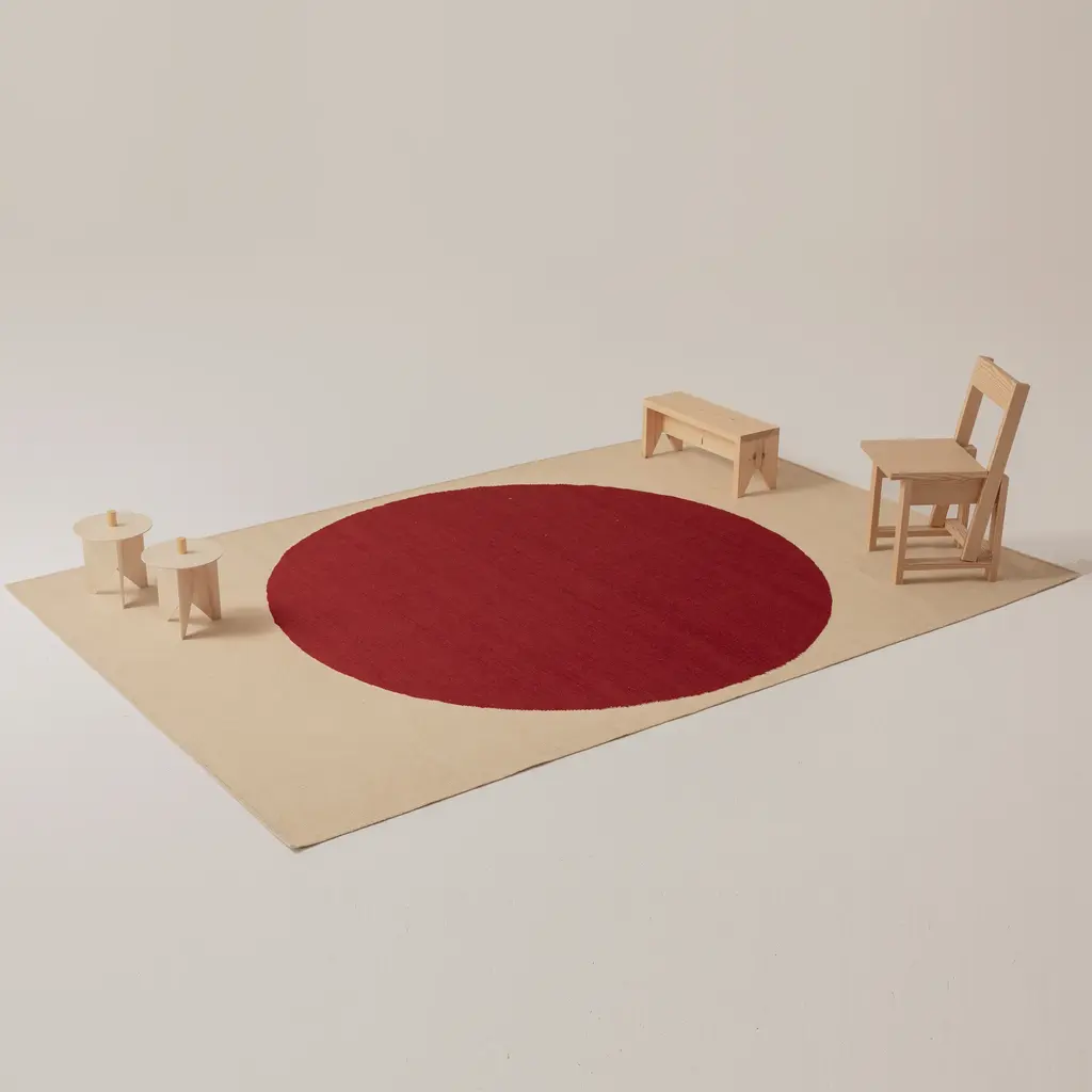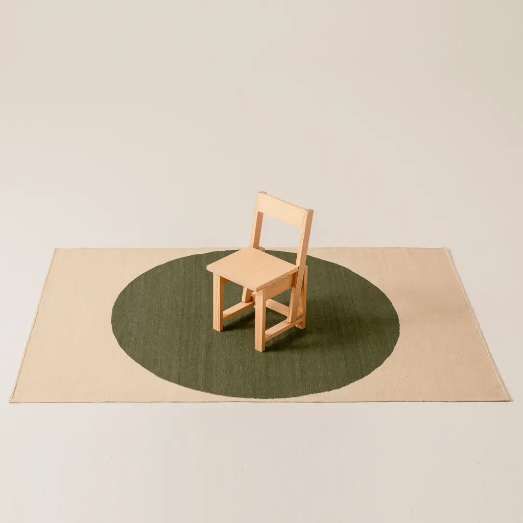 The Topo Rug from Nanimarquina redefines functional design by embracing simplicity and striking visual contrast. Featuring a large circle delicately placed at the edge of a rectangular field, this handwoven kilim blends traditional Afghan handspun wool craftsmanship with a modern, minimalist aesthetic. Available in monochromatic black, green, or red hues set against a natural raw background, the Topo Rug adds a refined, artistic statement to any space while honoring timeless textile heritage. Highlights