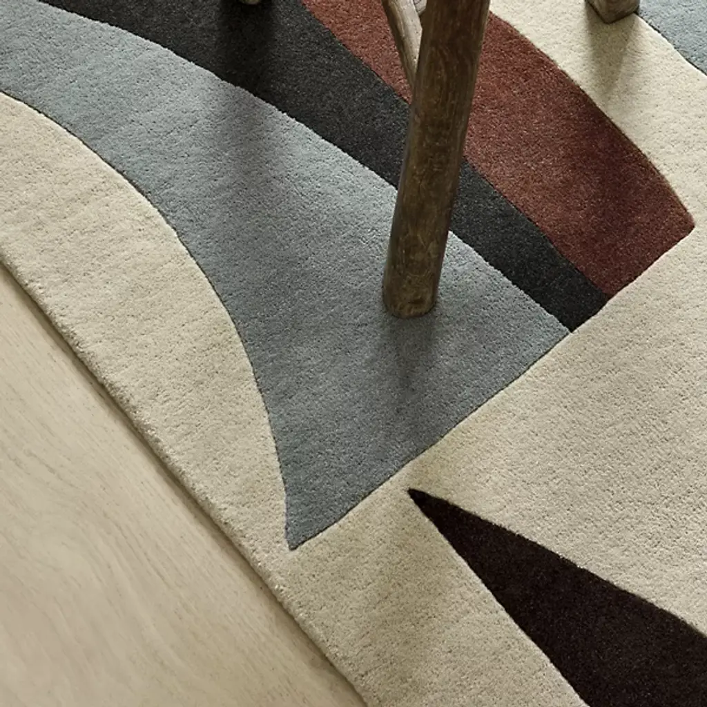 The Torillo Area Rug from Harlequin breaks circles into fragments that scatter across a grid-like framework. Handtufted from pure new wool in India, curved segments appear within rectangular boundaries, creating tension between organic and geometric forms. Each section contains different portions of circular shapes, making the eye work to complete the implied circles. This puzzle-like quality makes it perfect for modern living spaces where conversation pieces are valued. The pure wool construction ensures this rug can handle regular foot traffic while maintaining its graphic impact in seating areas or home offices.