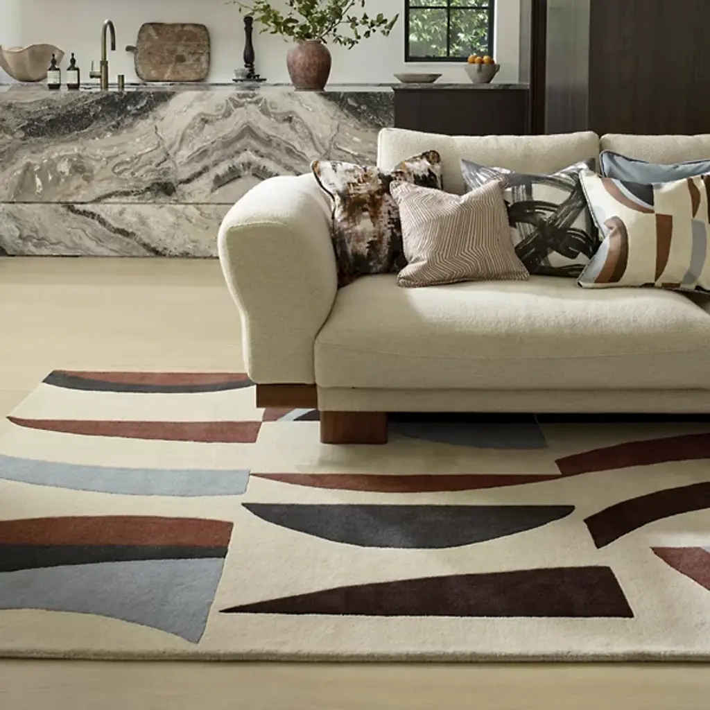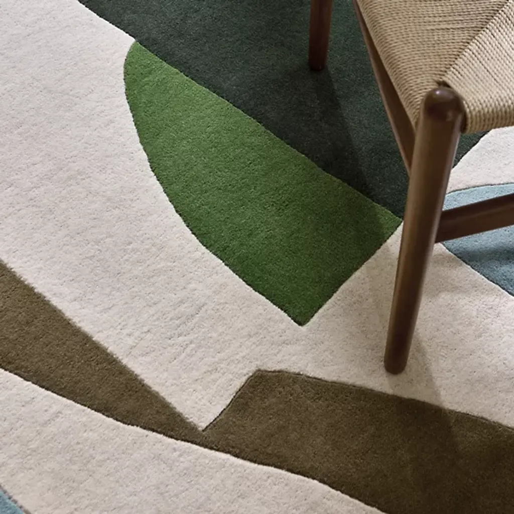 The Torillo Area Rug from Harlequin breaks circles into fragments that scatter across a grid-like framework. Handtufted from pure new wool in India, curved segments appear within rectangular boundaries, creating tension between organic and geometric forms. Each section contains different portions of circular shapes, making the eye work to complete the implied circles. This puzzle-like quality makes it perfect for modern living spaces where conversation pieces are valued. The pure wool construction ensures this rug can handle regular foot traffic while maintaining its graphic impact in seating areas or home offices.