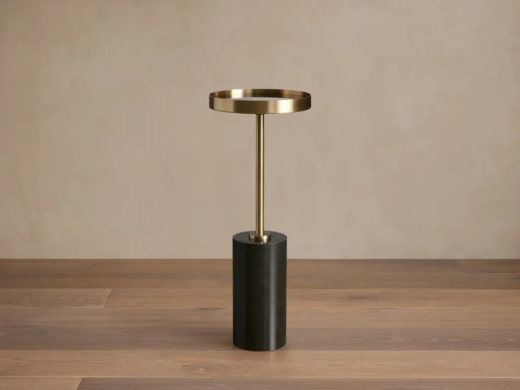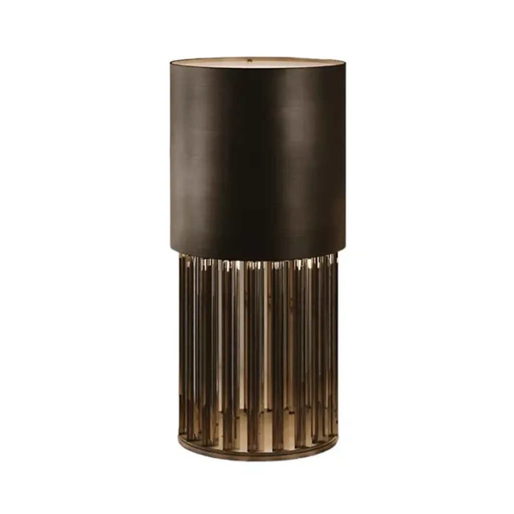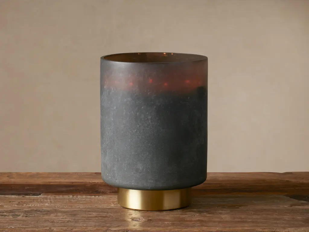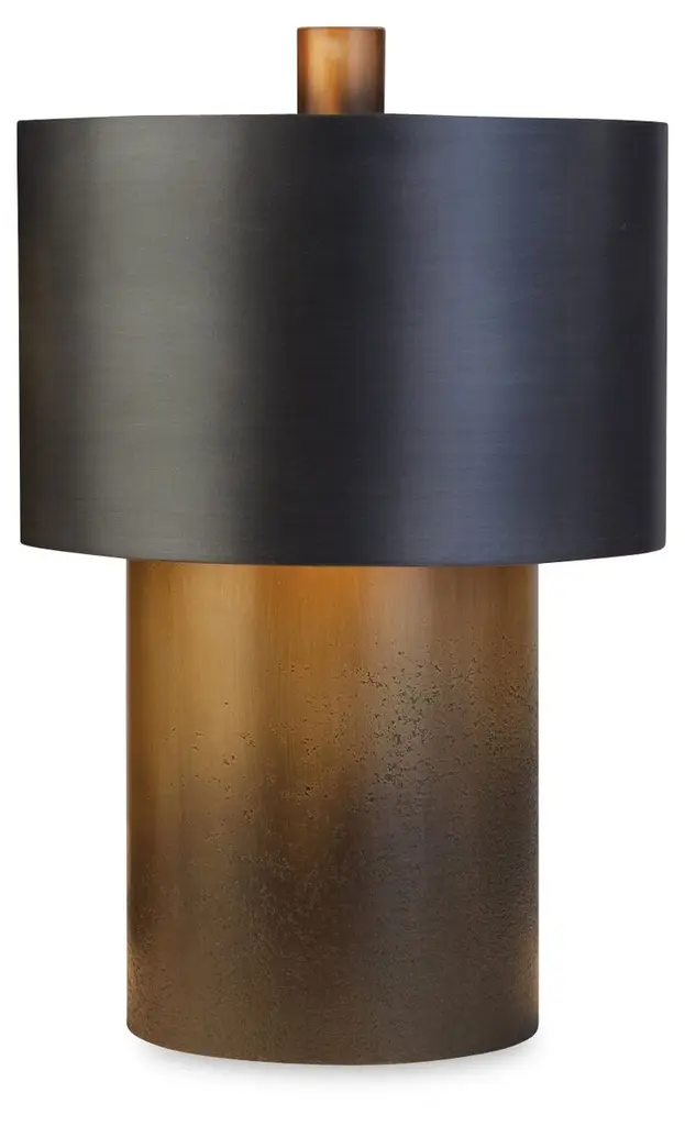 The bases of the Tortoise Drum lamps are constructed of thick sheet iron. Once completed, they are given an acid bath which produces a random, pitted texture in the metal which is enhanced by the antique brass finish. Bronze-finished metal shade. Antique Brass base. Bronze-finished finial. From a fashion forward perspective, Global Views offers accessories, furniture, statement lighting, and an assortment of rugs and mirrors to add beauty and joy to your home.
