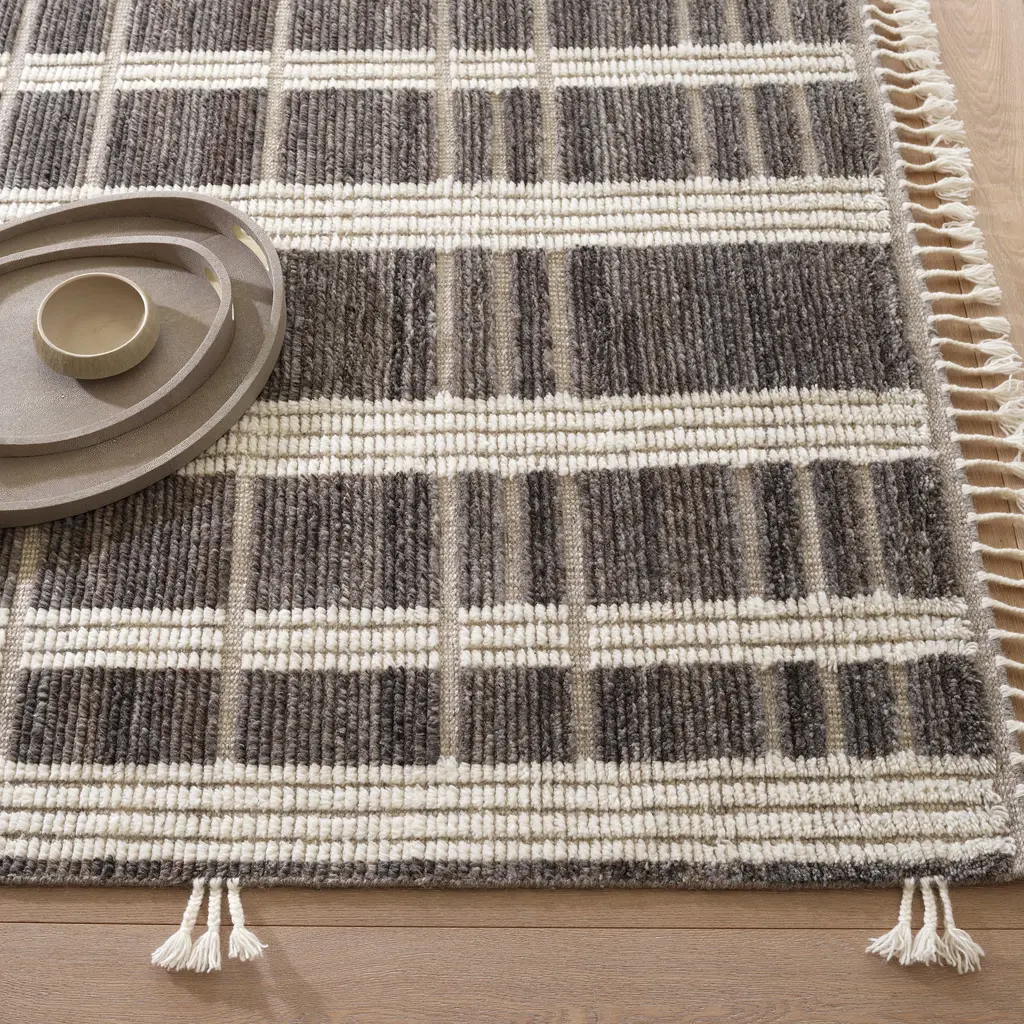 Designed by award-winning interior designer Marie Flanigan, the Tory Pewter Blue Hand Knotted Wool Rug showcases ivory and pewter blue stripes in a plush high-low weave, bringing rich texture and dimension to your floors. Soft underfoot and accented with bohemian braided tassels, it’s both comfortable and visually striking. Perfect for living rooms or bedrooms, this rug adds character and style while keeping things cozy.