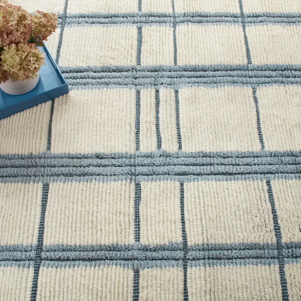 Designed by award-winning interior designer Marie Flanigan, the Tory Pewter Blue Hand Knotted Wool Rug showcases ivory and pewter blue stripes in a plush high-low weave, bringing rich texture and dimension to your floors. Soft underfoot and accented with bohemian braided tassels, it's both comfortable and visually striking. Perfect for living rooms or bedrooms, this rug adds character and style while keeping things cozy.