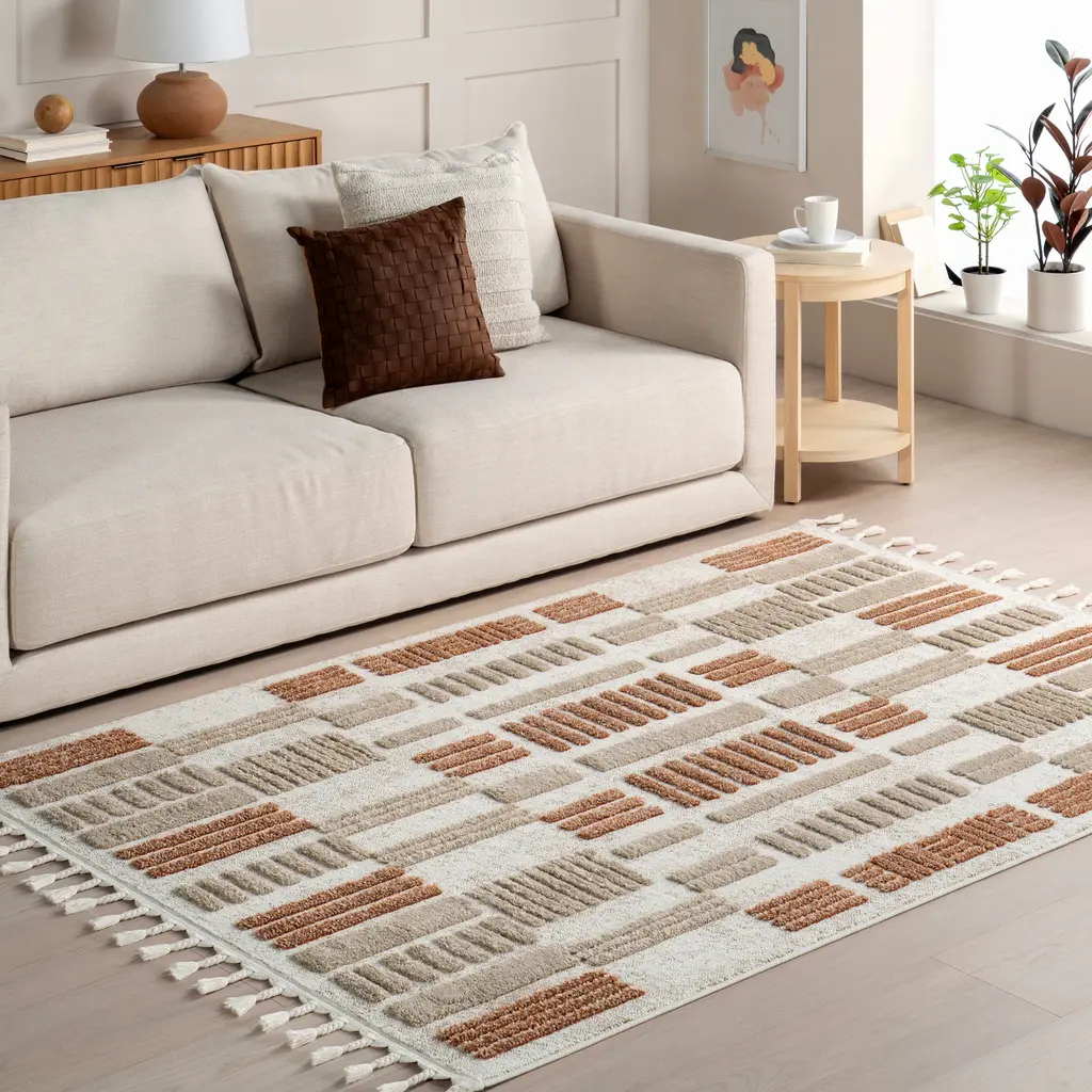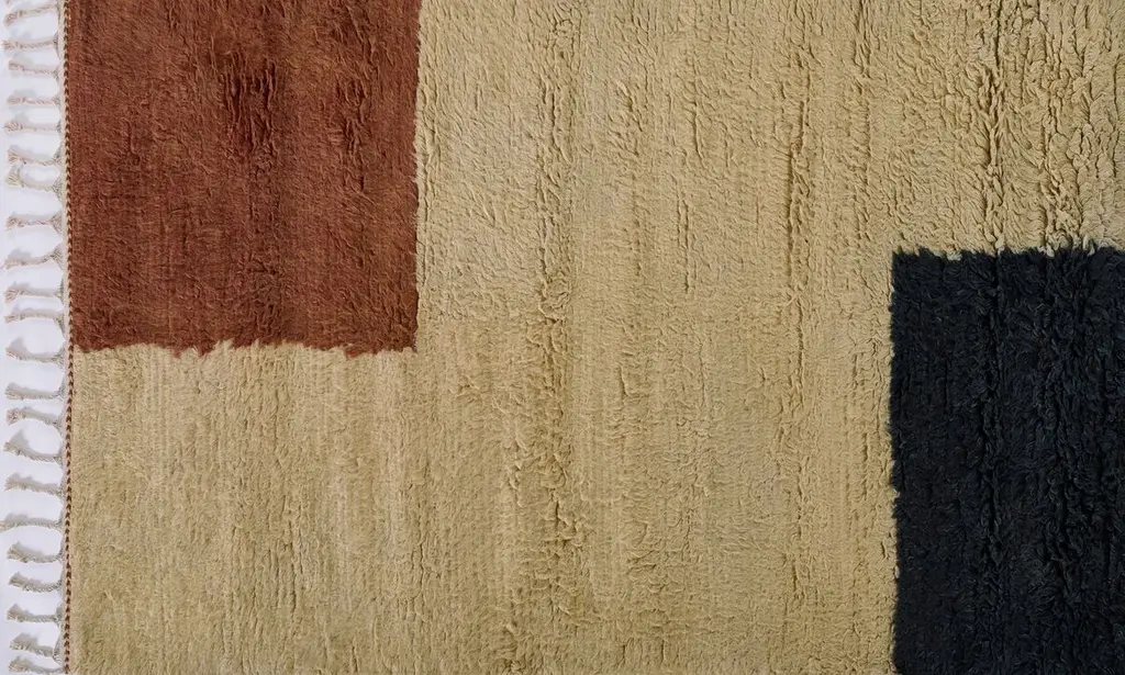 Beautiful hand woven thick shag rugs made from 100% New Zealand wool, using mill spun yarns. Made in India, the yarn is locally dyed in the traditional Vat Dying method. Before the first wash, the back of each rug is mildly burnt with hand-held flame emitting stoves. The rugs are given two rounds of rigorous washing, to provide the softest comfort underfoot. The finishing process includes hand shearing, with a unique and exaggerated one sided tassel fringe. Each tassel is twisted and rolled by hand into bunches with a knot tied at each end, for a unique hand-crafted appeal.