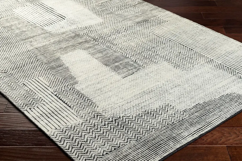 A collage of hand-knotted patterns gives this monochromatic wool rug its artisanal verve. A rug pad is recommended to help prevent slipping and extend the life of the rug.