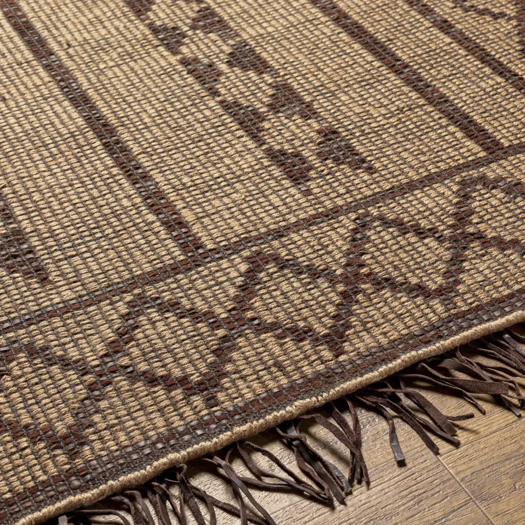 The Touareg Collection features compelling global inspired designs brimming with elegance and grace! The perfect addition for any home, these pieces will add eclectic charm to any room! The meticulously woven construction of these pieces boasts durability and will provide natural charm into your decor space. Made with Jute, Leather in India, and has No Pile. Spot Clean Only, One Year Limited Warranty.