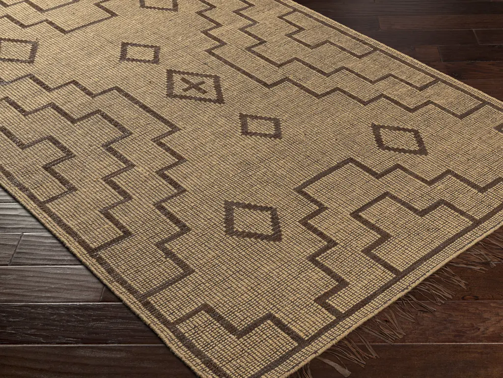 The Touareg Collection features compelling global inspired designs brimming with elegance and grace! The perfect addition for any home, these pieces will add eclectic charm to any room! The meticulously woven construction of these pieces boasts durability and will provide natural charm into your decor space. Made with Jute, Leather in India, and has No Pile. Spot Clean Only, One Year Limited Warranty.