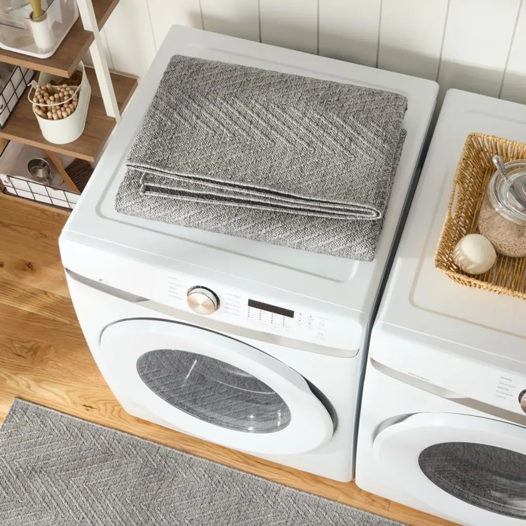 The Town & Country Basics Pax Herringbone Textured Solid Everwash® Machine Washable Area Rug is a perfect addition to any busy home. This hardwearing rug is ideal for high-traffic areas – use as a kitchen rug, living room rug, playroom rug, dining room rug, or entryway rug. Featuring a subtle herringbone textured design in beautiful solid colors, this versatile washable can be used in any indoor space. Made from recycled polyester and cotton with a safe non-slip backing that stays securely in place, this rug combines sustainability and stability for any home with kids or pets. Its foldable design makes it portable as an on-the-go picnic blanket or easy to store in the home. The low-profile design is ultra-durable and can be used under doorways and in entryways. With a non-shedding surface, this high-performance rug is ideal for people who suffer from allergies. It’s an ideal choice for households seeking both style and practicality.