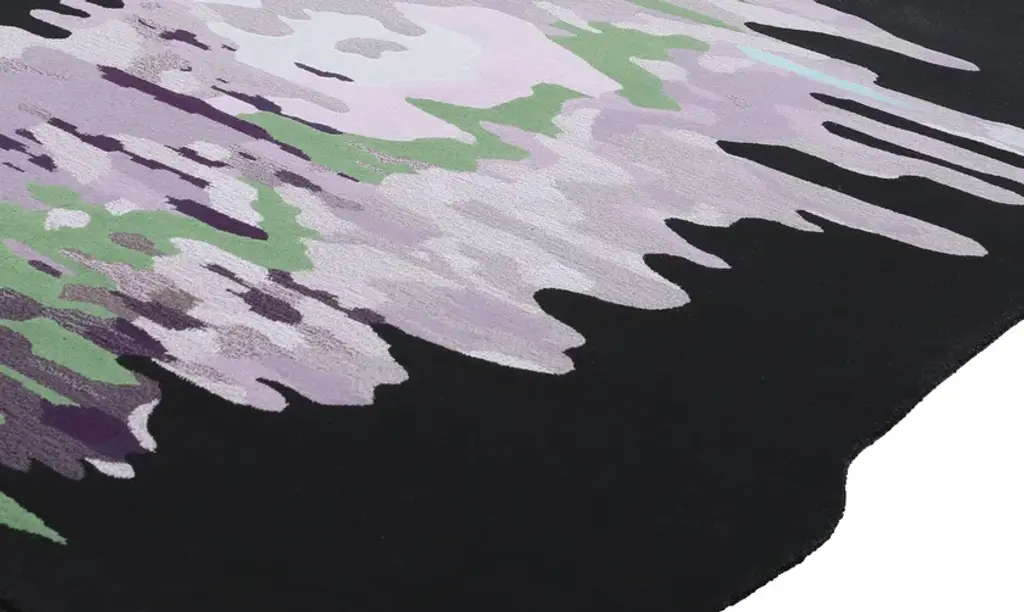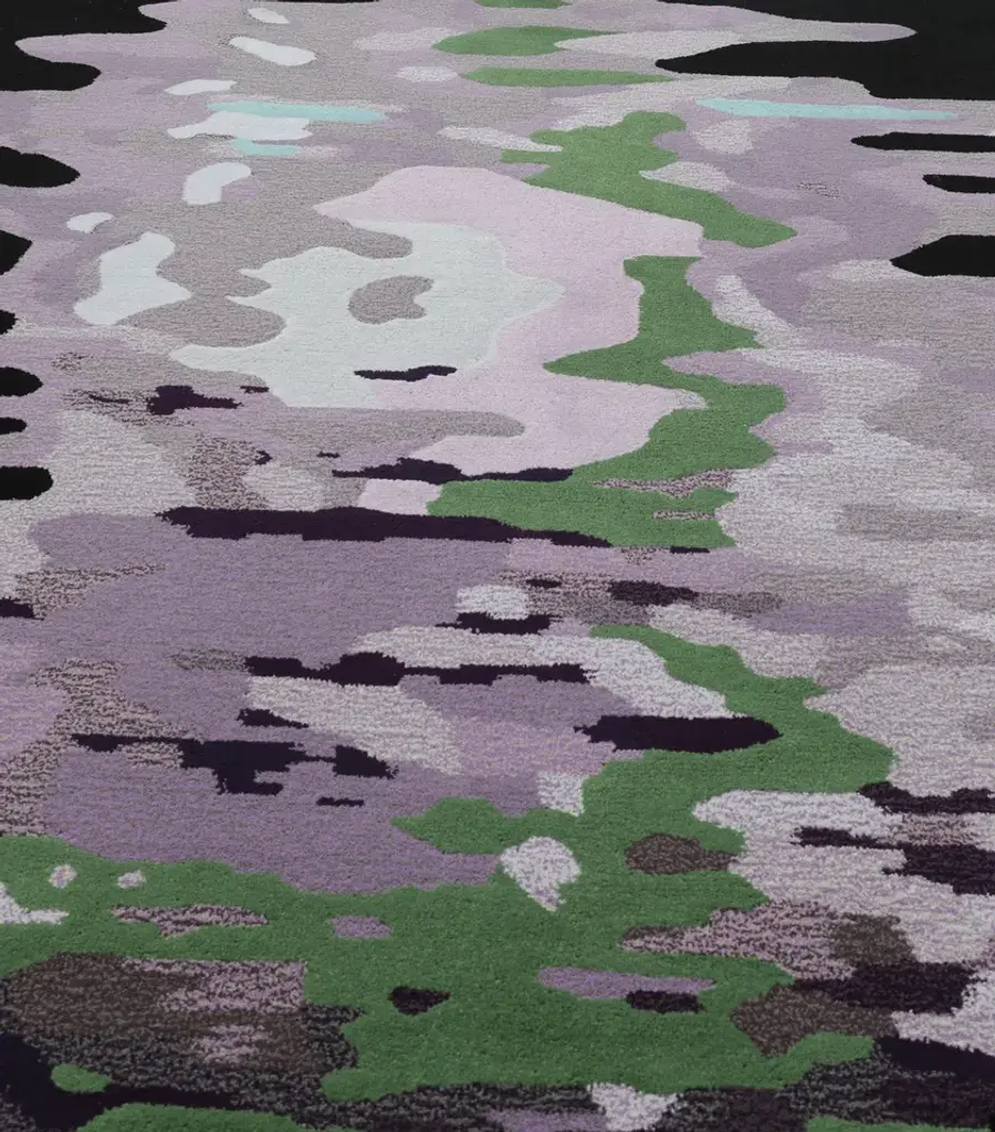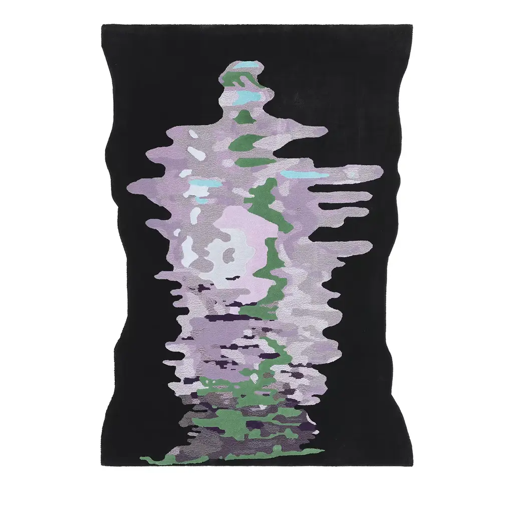Topiary 04 Dusk is a hand-tufted animal print rug in New Zealand wool and Tencel.Excessive human pruning that only serves the anthropocentric gaze intervenes in the carefully thought out sinuous branches of a tree as they maintain their balance and seek the best resources from the sun and rain for their growth. But a body of water perceives and recreates the joyful celebration of a free self.